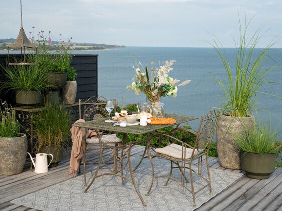 Antiikrohelise viimistlusega abilaud Duce on funktsionaalne lisa aeda, terrassile või rõdule. Kahetasandiline metallkonstruktsioon koos restpindadega pakub kindlat kohta taimedele, tarvikutele või serveerimisele, hoides vajaliku korrastatult ja mugavas ulatuses. Dekoratiivsed detailid annavad vormile iseloomu, sulandudes harmooniliselt looduslikku keskkonda.