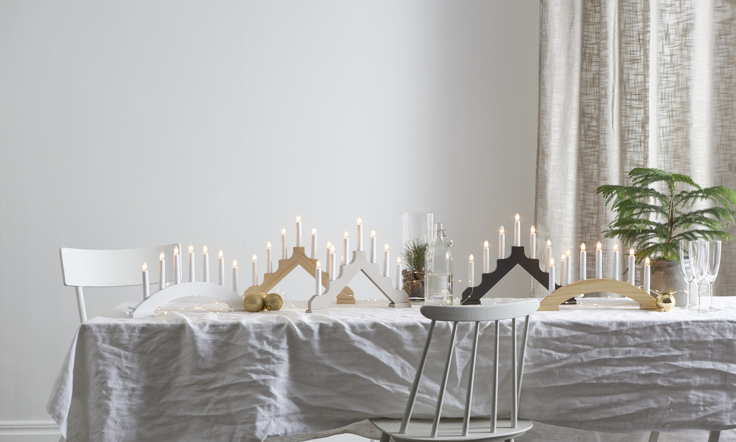 Klassikaline puidutooni advendiküünlajalg seitsme valgusallikaga. Kaunis kaarjas disain ja külm valge valgus loovad hubase, ent värske meeleolu pimedatel talveõhtutel. Sobib suurepäraselt aknalauale või riiulile, lisades interjöörile pidulikku helgust.