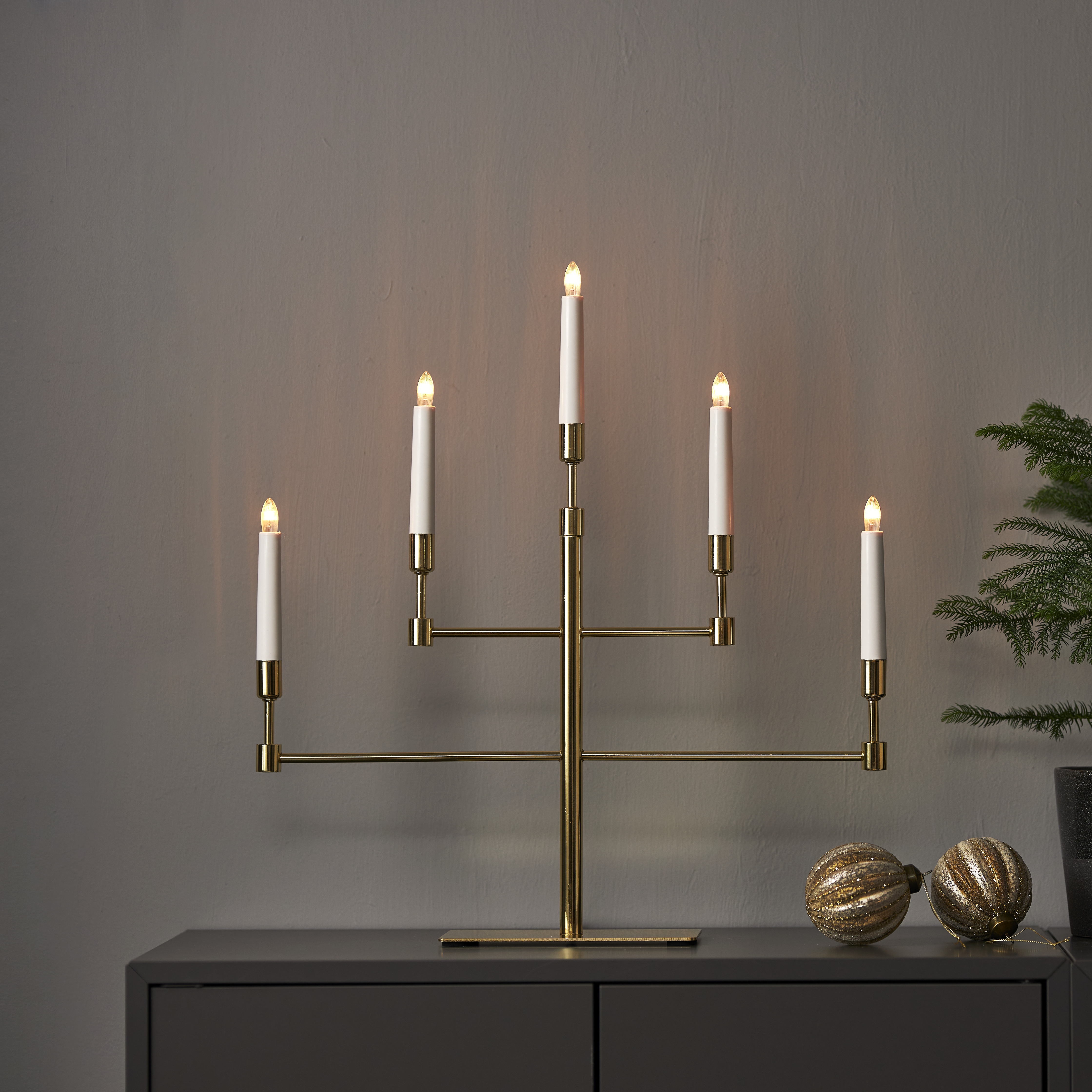 • Värv: kuldne. • Valgusallikad: 5 pirni (E10 pirnid on komplektis). • Valguse toon: valge. • Maksimaalne lambivõimsus: 21 W. • Mõõtmed: 53x50cm • Toitekaabli värv: must. • Toitekaabli pikkus: 1,8 m. • Kasutuskoht: Ainult siseruumides (IP20).