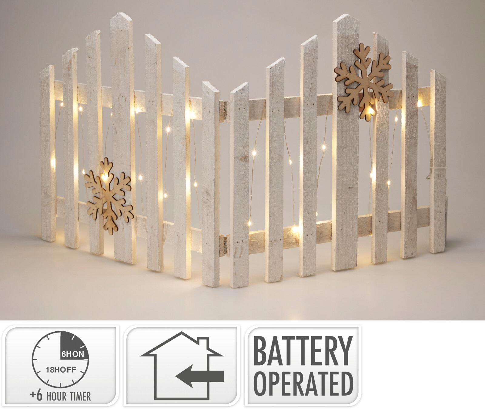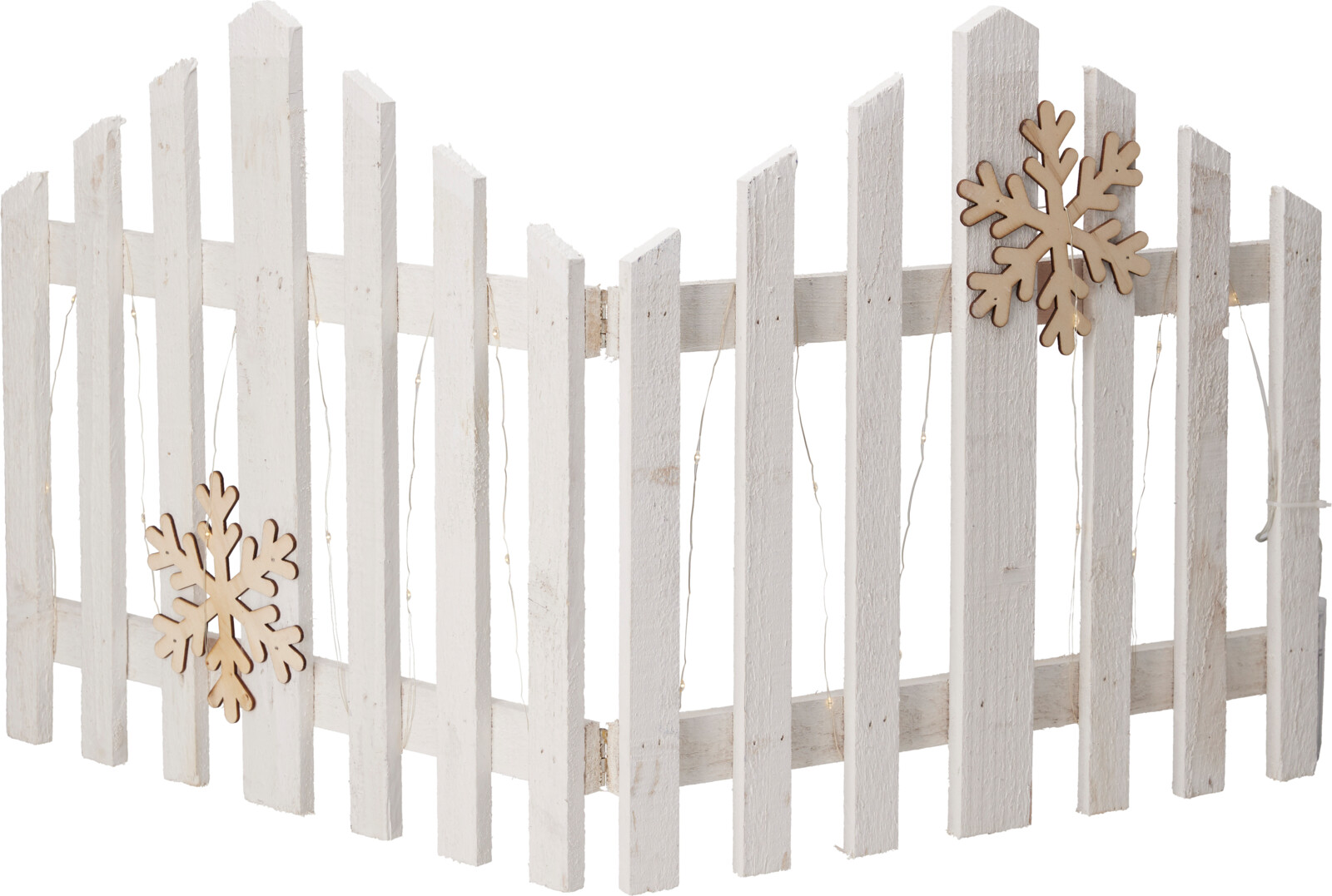 LED-valgustusega puidust dekoratiive lumehelvestega aed. Stiilne valge puidust dekoratiivne aed loob koju talvise ja piduliku meeleolu. Aed on valmistatud hiina ebatsuugast (Cunninghamia lanceolata) ning kaunistatud puidust lumehelvestega. Integreeritud 15 sooja valget 3 mm LED-tuld loovad õrna ja hubase valguse – ideaalne jõuludekoratsioon aknalauale, riiulile või jõuluküla taustaks.