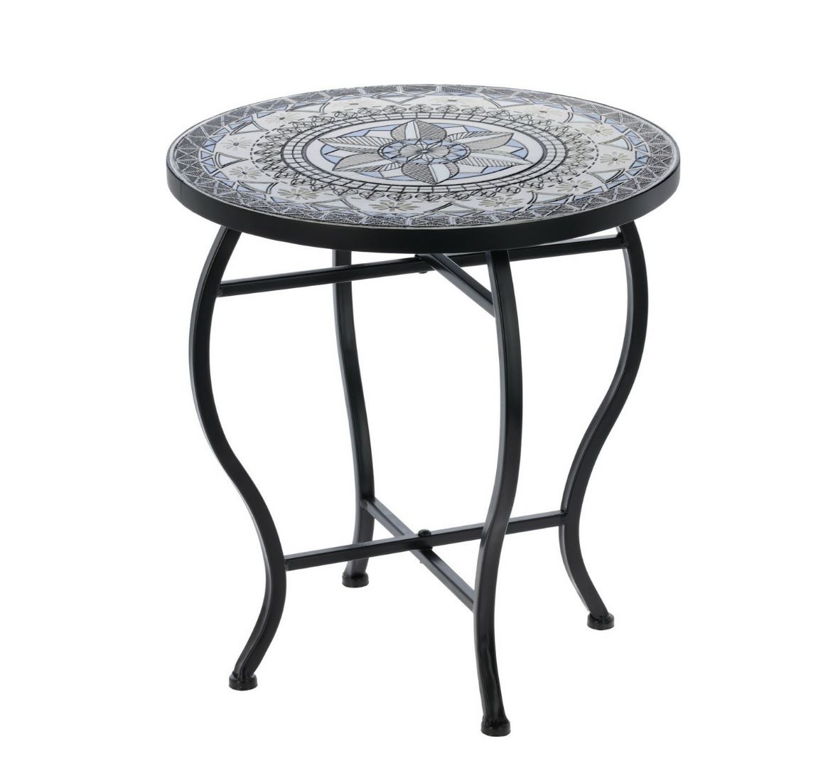 Elegantne ja praktiline mosaiigimustriline Bistro aialaud, mis lisab rõdule, terrassile või aeda isikupära ja hubasust. Selle 38 cm diameetriga ümar lauaplaat on kaunistatud detailse mandalamustriga, mis püüab pilku ning loob ainulaadse visuaalse efekti.