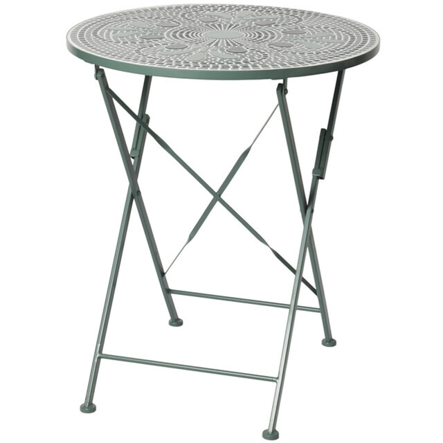 Metallist aialaud Buddy on kokkupandava raamiga ning ümar pealispind on kaetud mosaiigilaadse dekoratiivse mustriga, mis annab sellele detailse ja kergelt pitsilise ilme. Klassikaline vorm sobitub erinevate õuealadega.
