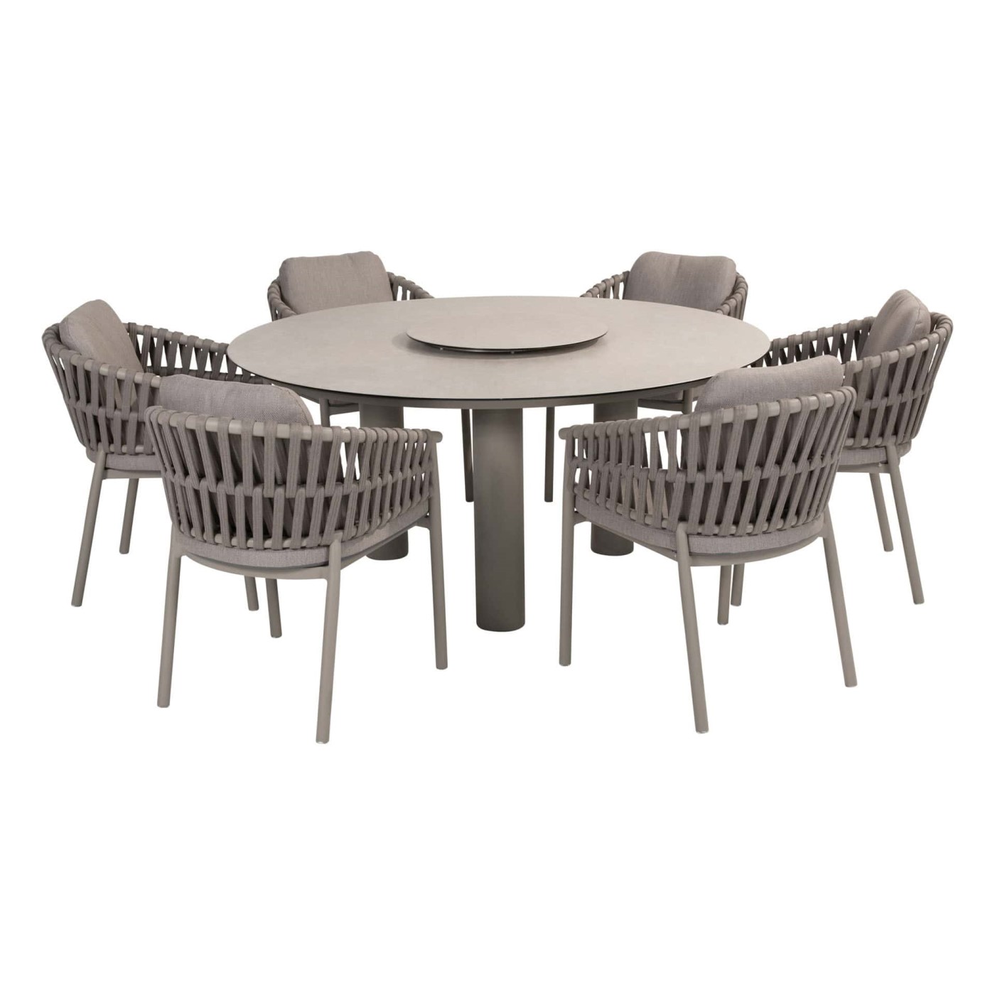 Donato Low aialaud ühendab kaasaegse disaini ja praktilisuse, pakkudes stiilset ning mugavat lahendust õues einestamiseks. 160 cm läbimõõduga ümar laud on viimistletud pehme latte-tooniga ja selle trükitud keraamiline lauaplaat jäljendab loodusliku kivi luksuslikku ilmet, säilitades samas keraamika praktilised eelised – kriimustuskindluse ja lihtsa hoolduse.
