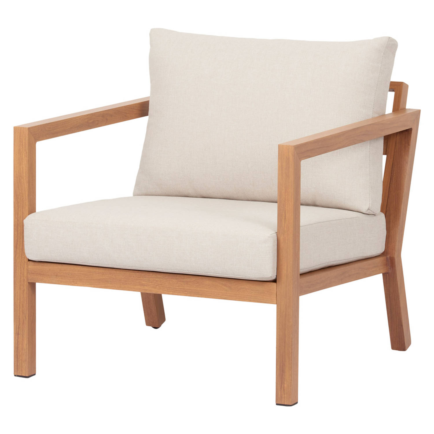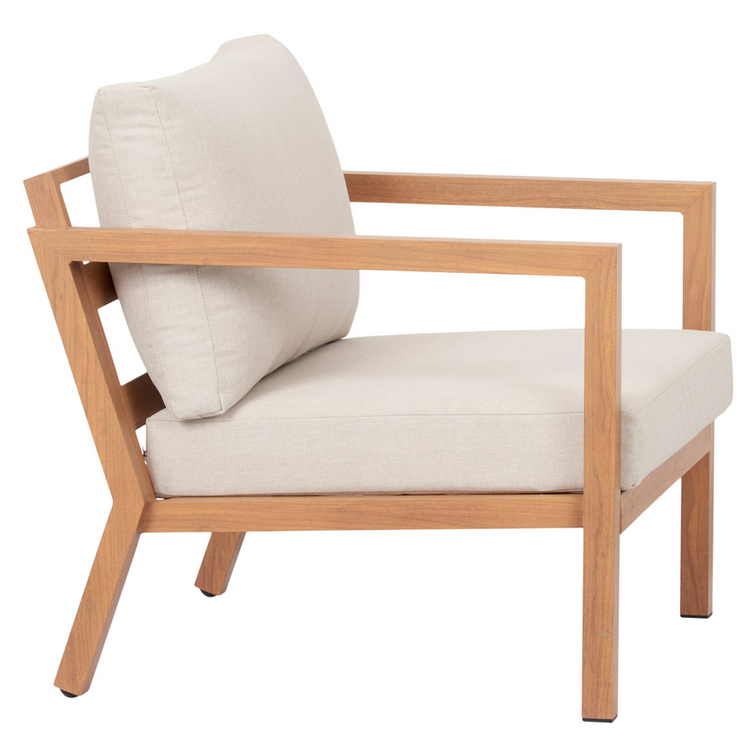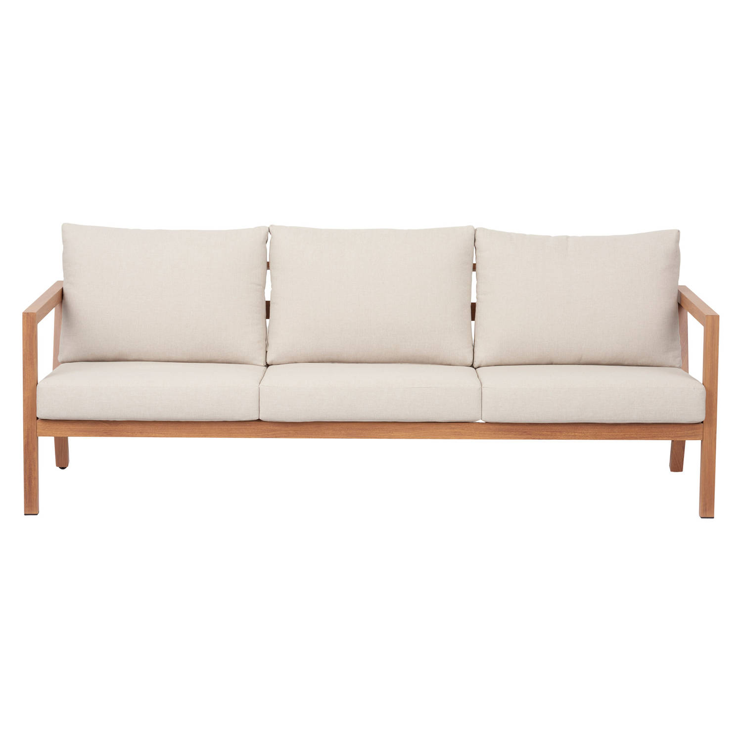 Stiilse ja kauni disainiga kvaliteetne aiamööblikomplekt Katinka. Kui teile meeldib naturaalse puidu tooni aiamööbel, kuid te taha puidu eest puitu aastast aastasse hooldada, siis see komplekt on just teile. Raamid on naturaalses toonis pulbervärvitud alumiiniumist, lauaplaat hallist pritskivist ja padjad valgest polüestrist. Komplekt koosneb diivanist, kahest toolist, lauast ja patjadest.