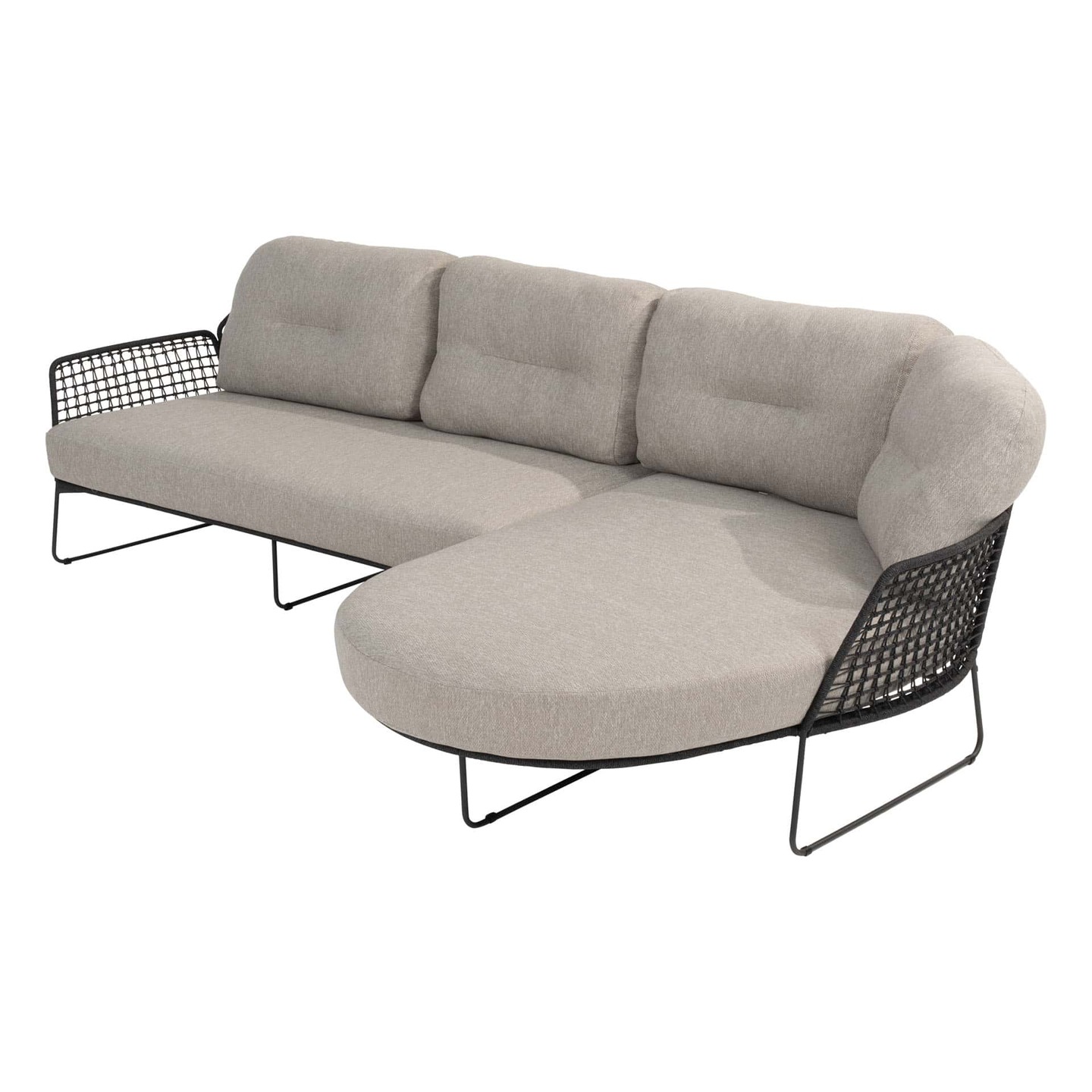 Rhodos aiamööblikomplekt ühendab elegantsi, mugavuse ja kaasaegse disaini. Komplekt koosneb kaheosalisest aianurgadiivanist, mida saab paigutada vastavalt vajadusele koos nurgamooduliga, ning eraldiseisvast tugitoolist. Õhuline metallraam ja kaunid kaarjad jooned loovad visuaalselt kerge ja stiilse tulemuse, mis täiendab iga terrassi või aianurka.