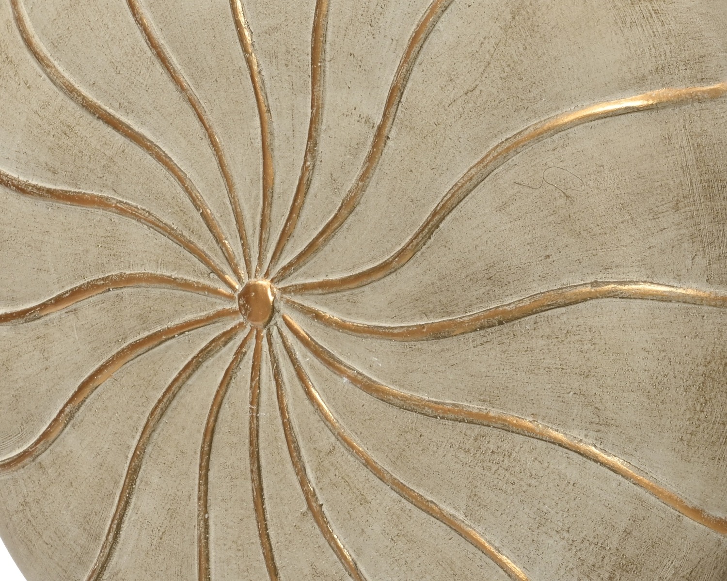 Outdoor Living aiaskulptuur Päike toob aeda sooja ja rahuliku meeleolu. Ringikujulisel skulptuuril kulgevad keskpunktist kiirtena välja reljeefsed jooned, mis meenutavad päikesekiiri. Liivatooni pind koos kuldse varjundiga detailidega annab kujule pehme ja looduslähedase ilme ning sobib hästi nii rohelise taustaga aeda kui ka terrassile.