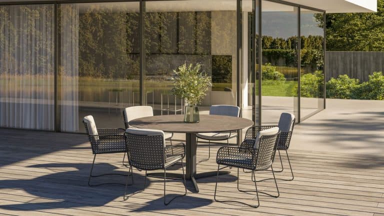 4 Seasons Outdoor Aprilla on ideaalne söögitool teie aeda. Sellel toolil on roostevabast terasest alus ja vastupidav vitstest iste.