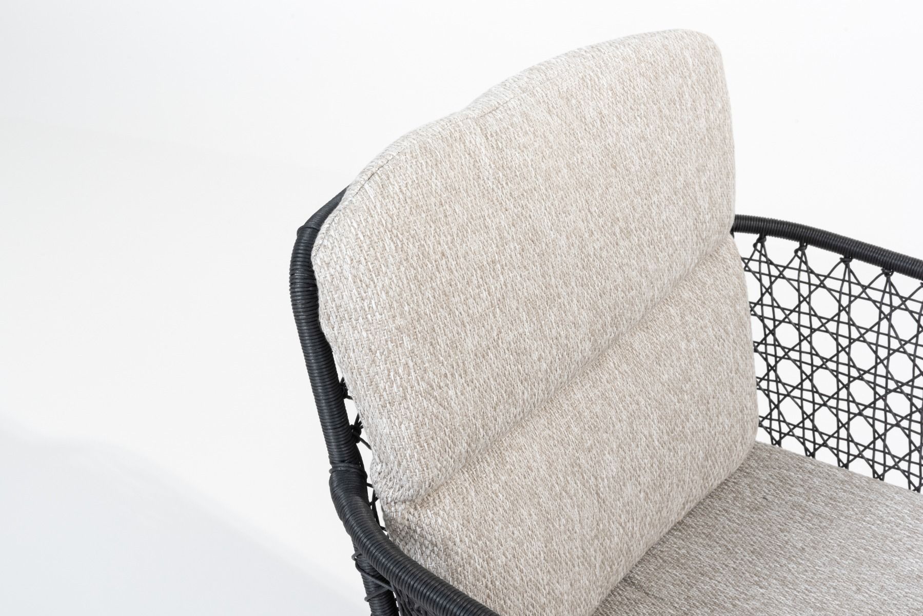 Tehniline info Materjalid: roostevaba teras, vitstest Mõeldud sise- ja välistingimustes kasutamiseks: jah Patjade arv: 2 Värvus: hall Istme laius: 60cm Sügavus: 67cm Kõrgus: 86cm Käetoe kõrgus: 67cm Istme sügavus koos seljatoega: 54cm Istme kõrgus koos padjaga: 47cm Punutiste tüüp: 7mm poolringikujuline palmik Mõõteviga: ± 2cm