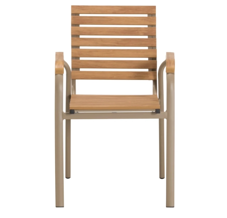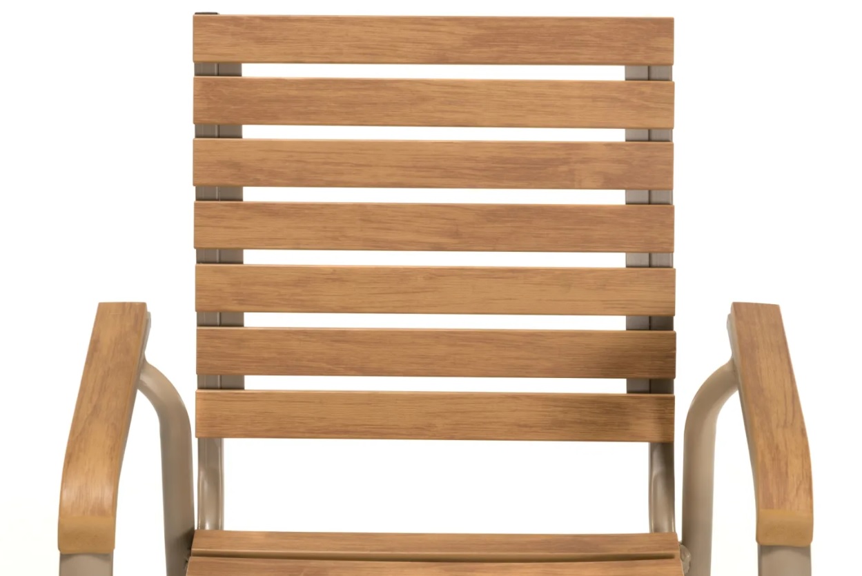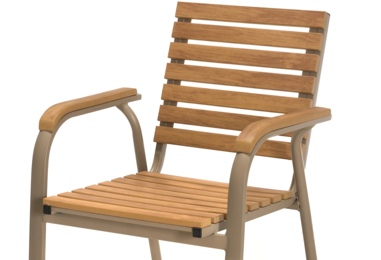 Stiilne tool on valmistatud vastupidavast puiduimitatsioonist. Ilmastikukindel tool on tänu terasraamile kergesti hooldatav ja väga stabiilne. Toolid on virnastatavad, seega ei võta need hoiustamisel liiga palju ruumi.