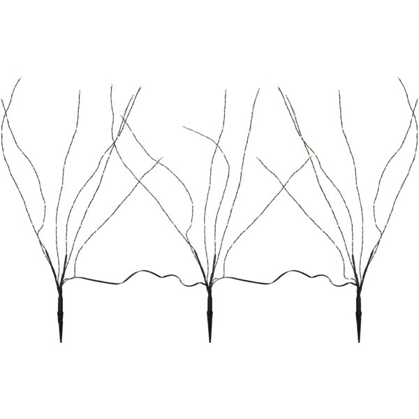 Dekoratiivsed valgusoksad on efektne kaunistus, mis sobib suurepäraselt kasutamiseks nii aias, terrassil kui ka siseruumides. Komplekti kuulub kolm musta painutatavat oksa, mille igaüks sisaldab kokku 180 sooja valget LED-tulukest. Tulemuseks on hubane ja pilkupüüdev valgusmäng. Valgusti töötab vooluvõrgust ning vajab ühendamist pistikupessa – vajalik trafoga adapter kuulub komplekti. IP44 kaitseklass tagab ohutu kasutuse ka välistingimustes.