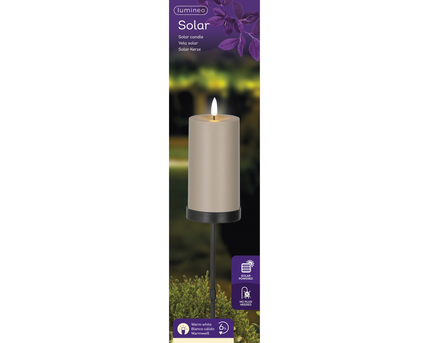 Lumineo Solar LED aiavalgusti on küünlakujuline maasse torgatav valgusti, mis loob aeda või peenra äärde hubase meeleolu. Pruun korpus ja soe valge „leegiefektiga“ valgus meenutavad ehtsat küünalt, kuid seade töötab turvaliselt LED-tehnoloogial.