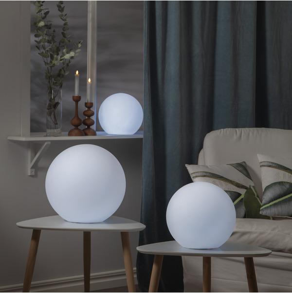 Twilights sarja suurem LED-valguskera sobib suurepäraselt meeleolu loomiseks nii siseruumides kui ka õues. Valgusti pakub 12 LED-punktiga RGB+W valgustust, mille tooni saab muuta kaugjuhtimispuldiga – valikus on kas värvimuutus või püsiv värv. Komplektis on laetavad patareid ja laadija. Täislaetud aku võimaldab kuni 8 tundi valgustust. Efektne aksessuaar, mis mõjub eriti hästi koos erinevas suuruses valgustitega.