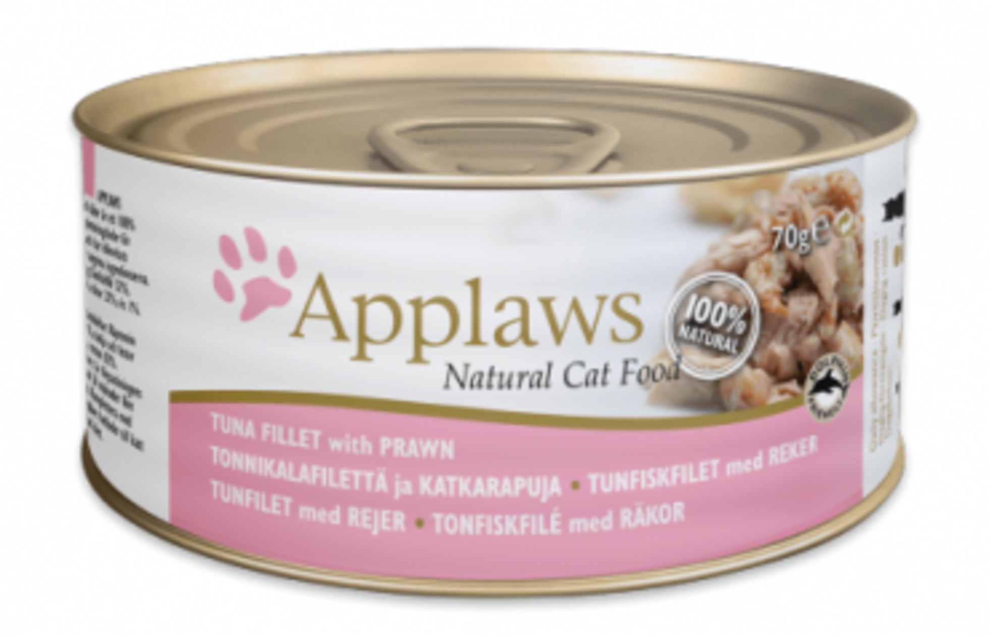 Applaws naturaalne konservtoit täiskasvanud kassidele tuunikala ja krevettidega.