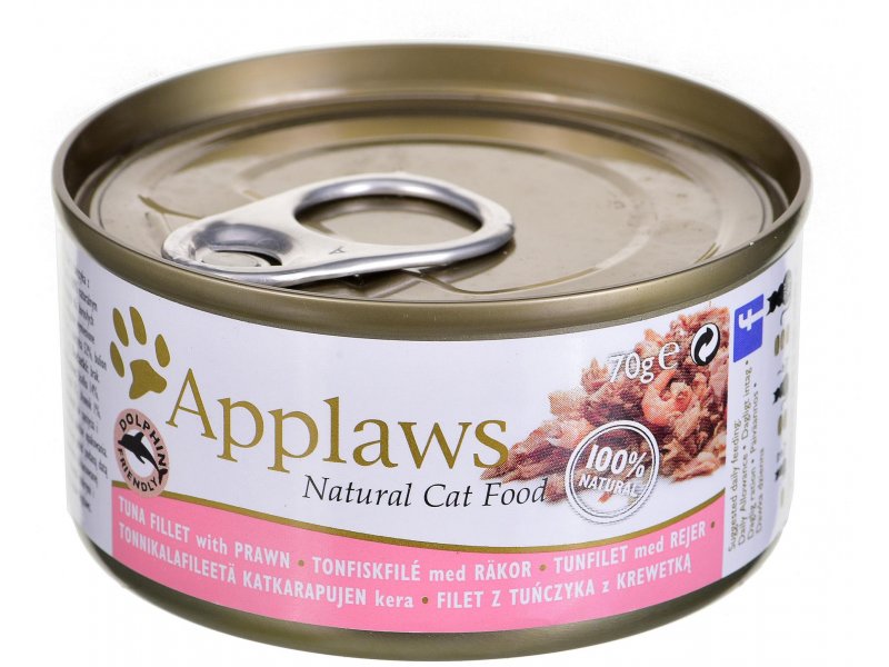 Applaws konserv täiskasvanud kassidele tuunikala ja krevettidega. Toit on naturaalne ning ei sisalda muid koostisosi kui pakendil näidatud.