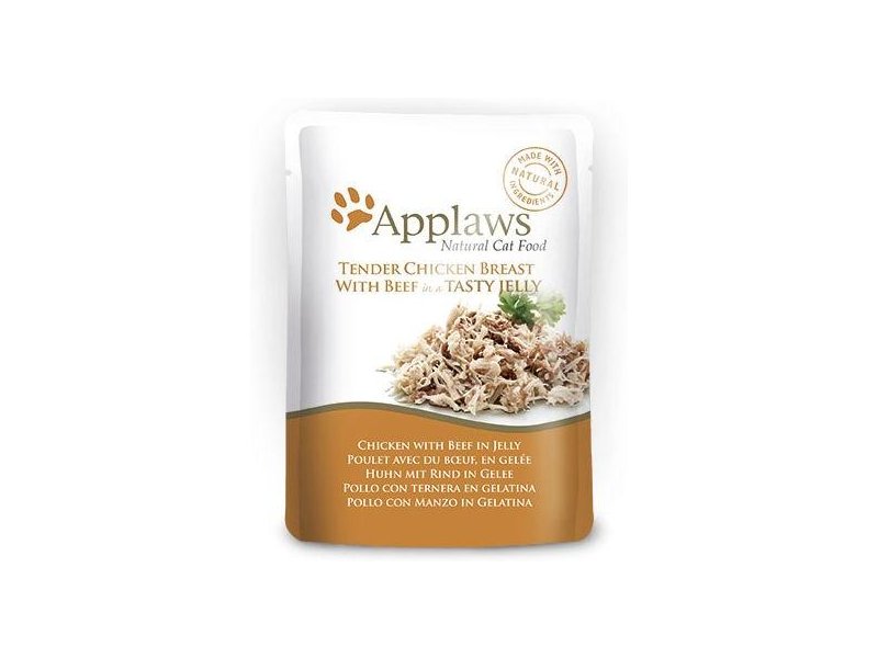 Naturaalne täistoit kanafilee ja veiselihaga želees, täiskasvanud kassidele.