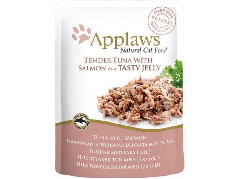 Applaws Natural märgtoit kassidele, tuunikalafilee ja lõhega želees. Täiendsööt kassidele.