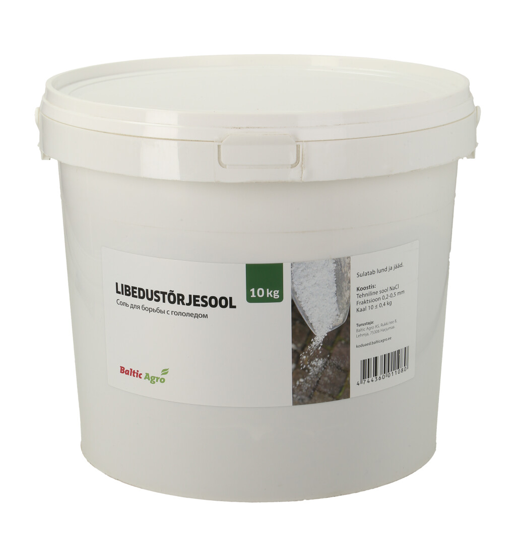 Baltic Agro libedustõrjesool on tõhus vahend lume ja jää kiireks sulatamiseks talvistel teedel, kõnniteedel ja muudel pindadel. Peene 0,2–0,5 mm fraktsiooniga tehniline NaCl sool toimib kiiresti ja muudab pinna ohutumaks libisemise vältimiseks. Soola kasutamisel kivisillutisel, betoonil ja puitpindadel tuleb olla ettevaatlik, sest see võib materjale kahjustada — seetõttu tuleks sulanud mass kohe pärast toimimist pindadelt eemaldada. 10 kg pakend sobib hästi koduseks kasutamiseks ja on mugav hoiustada.