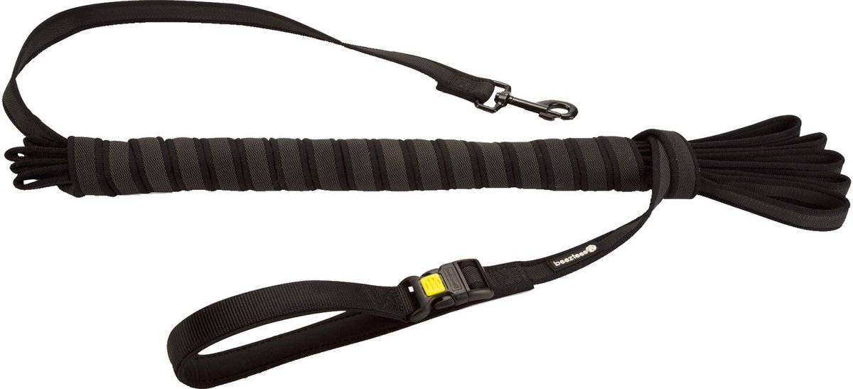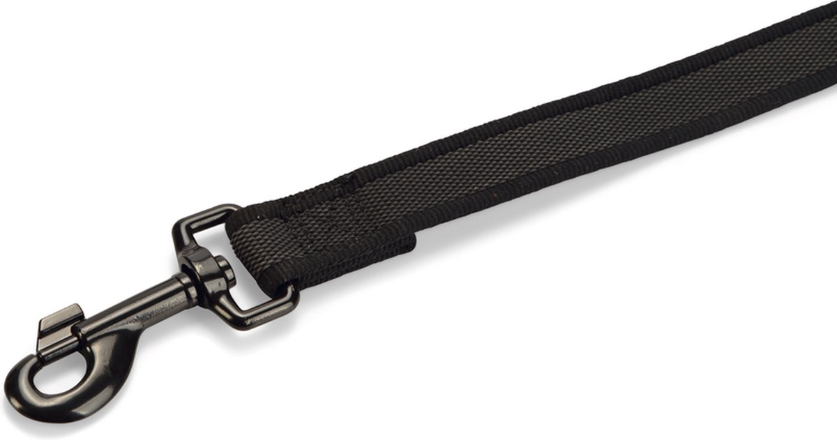 Nailonist valmistatud rihm on täielikult kaetud neopreenkihiga. See materjal kuivab kiiresti ja tõrjub mustust, muutes eseme ilmastikukindlaks ning sobivaks välitingimustesse. Tänu pehmele kattele on ka käepide mugav ega sooni kätt. Tugev karabiin kinnitub hõlpsalt koera kaelarihmale või rakmetele.