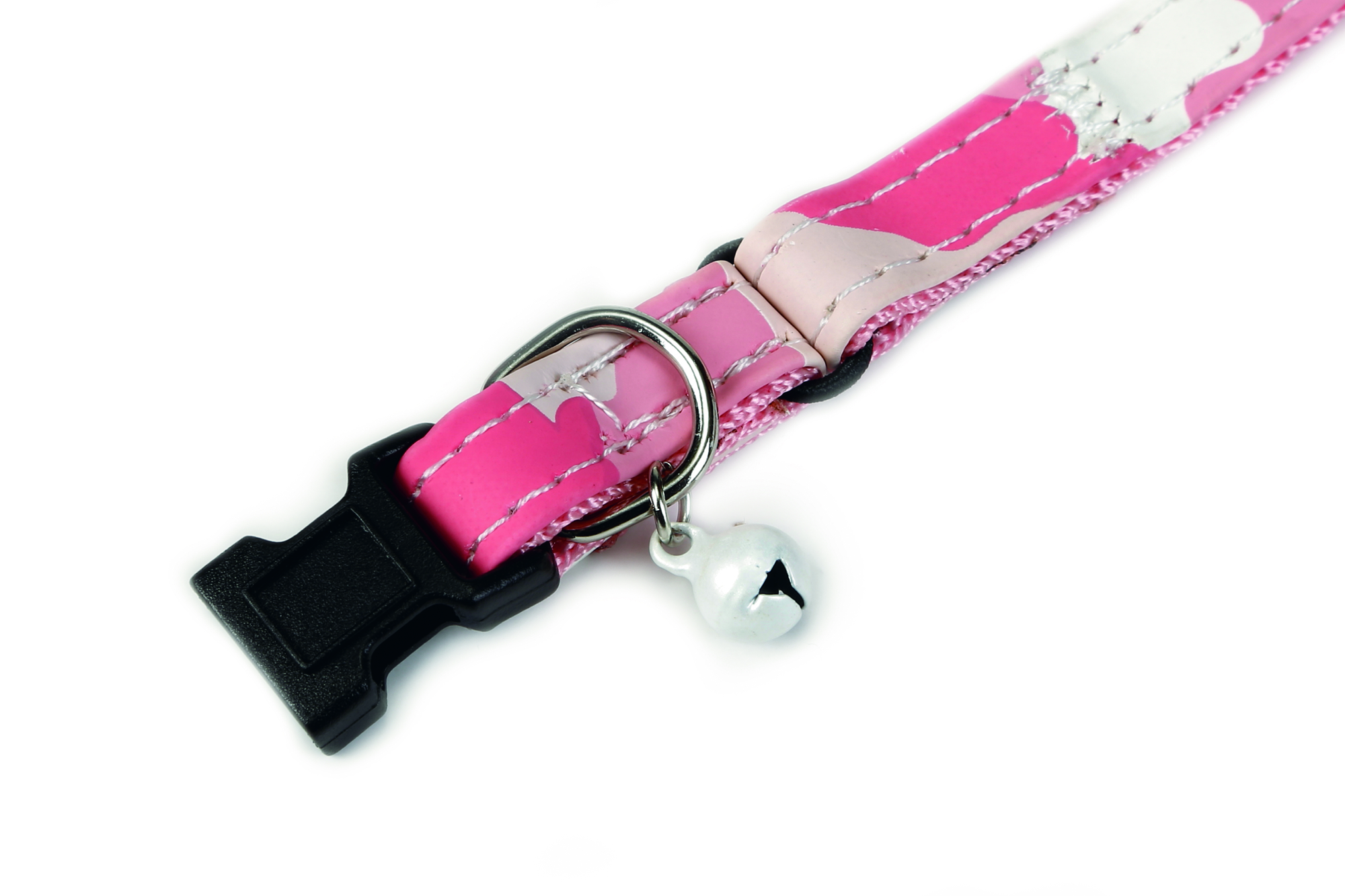 Beeztees kaelarihm kassile nylon camouflaaz roosa kellukesega