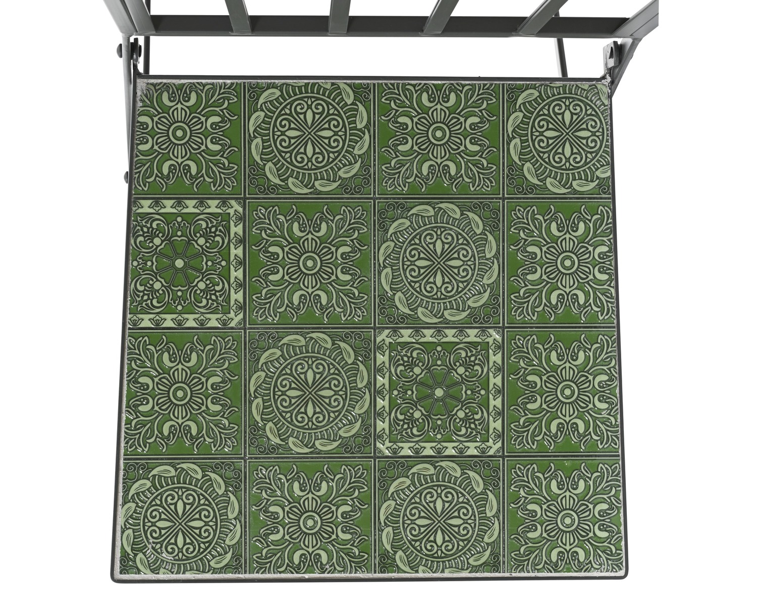 Mosaiikpinnaga bistrootool lisab aeda või terrassile Vahemere stiili ja kunstipärast elegantsi. Roheliste mosaiikkiviplaatide muster istmel loob ainulaadse ja silmapaistva välimuse. Raudraami tugevus koos E-katte ja pulbervärviga viimistlusega tagab tooli vastupidavuse. Kokkupandav disain võimaldab tooli hooajaliselt hoiustada või ruumi kokku hoida.