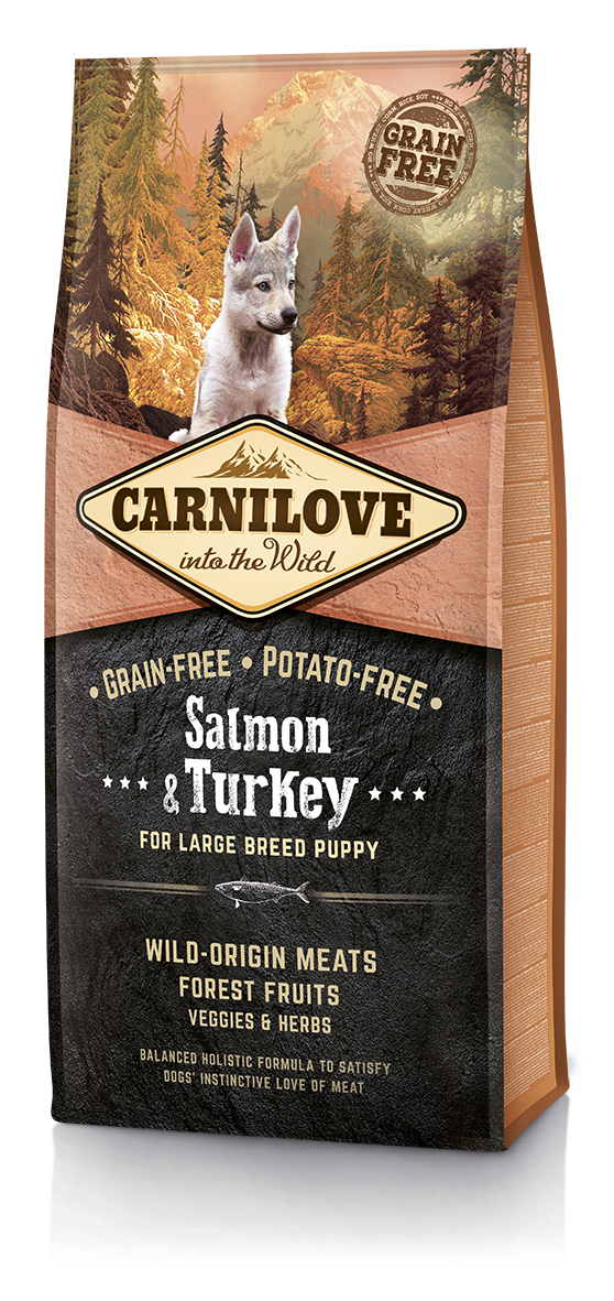 Carni Love Lõhe & Kalkun teravilja- ja kartulivaba täistoit suurt tõugu koerte kutsikatele (= 25kg, 3-30 kuud)