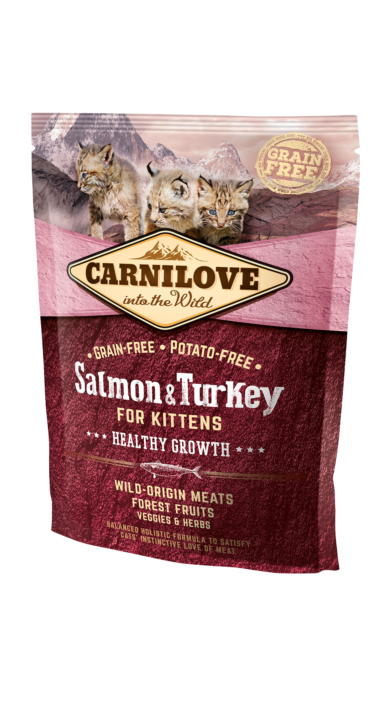 Carnilove lõhe ja kalkunilihaga kuivtoit väikestele kassipoegadele.
