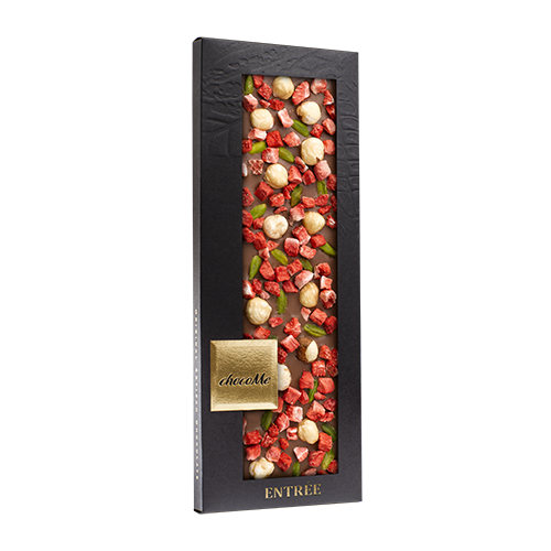 CHOCOME piimašokolaad maasika tükid, pistaatsia, maapähkel 110g