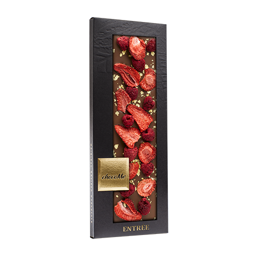 CHOCOME piimašokolaad maasika tükid, vaarikad, kuld 110g