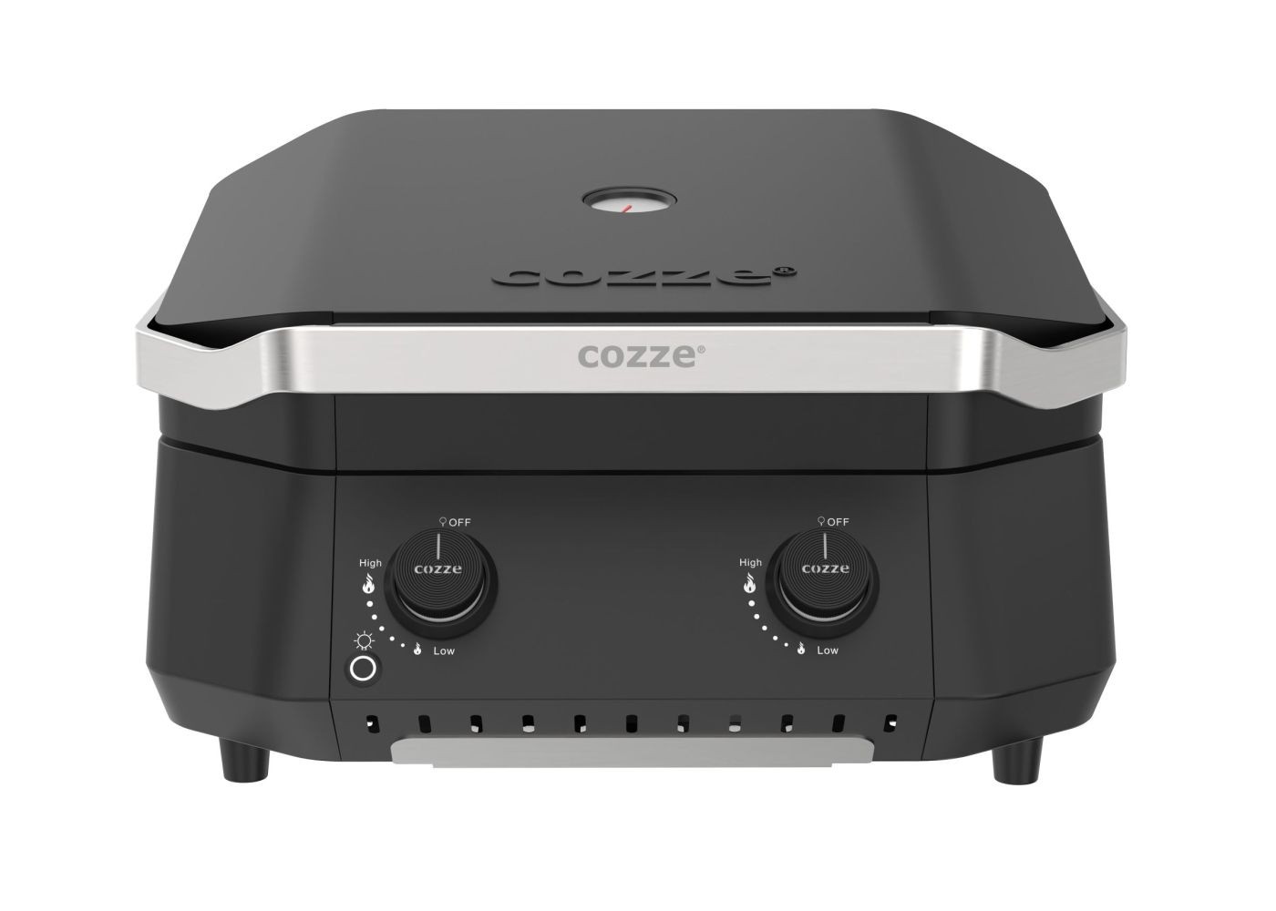 Cozze® G-500 on innovaatiline kahe tsooniga gaasigrill, mis võimaldab grillida nii otse kui ka kaudselt. Kaks eraldi reguleeritavat U-kujulist roostevabast terasest põletit tagavad ühtlase kuumuse kogu grillimispinnal ja loovad võimaluse kasutada kaudset küpsetamist – ideaalne suuremate lihakamakate, kala või juurviljade valmistamiseks. Automaatne süüde, LED-valgustusega juhtnupud ja sisseehitatud termomeeter teevad kasutamise eriti lihtsaks ja täpseks. Pulbervärvitud galvaniseeritud teraskorpus tagab vastupidavuse ja kaitse rooste eest.