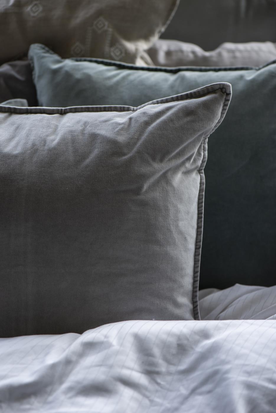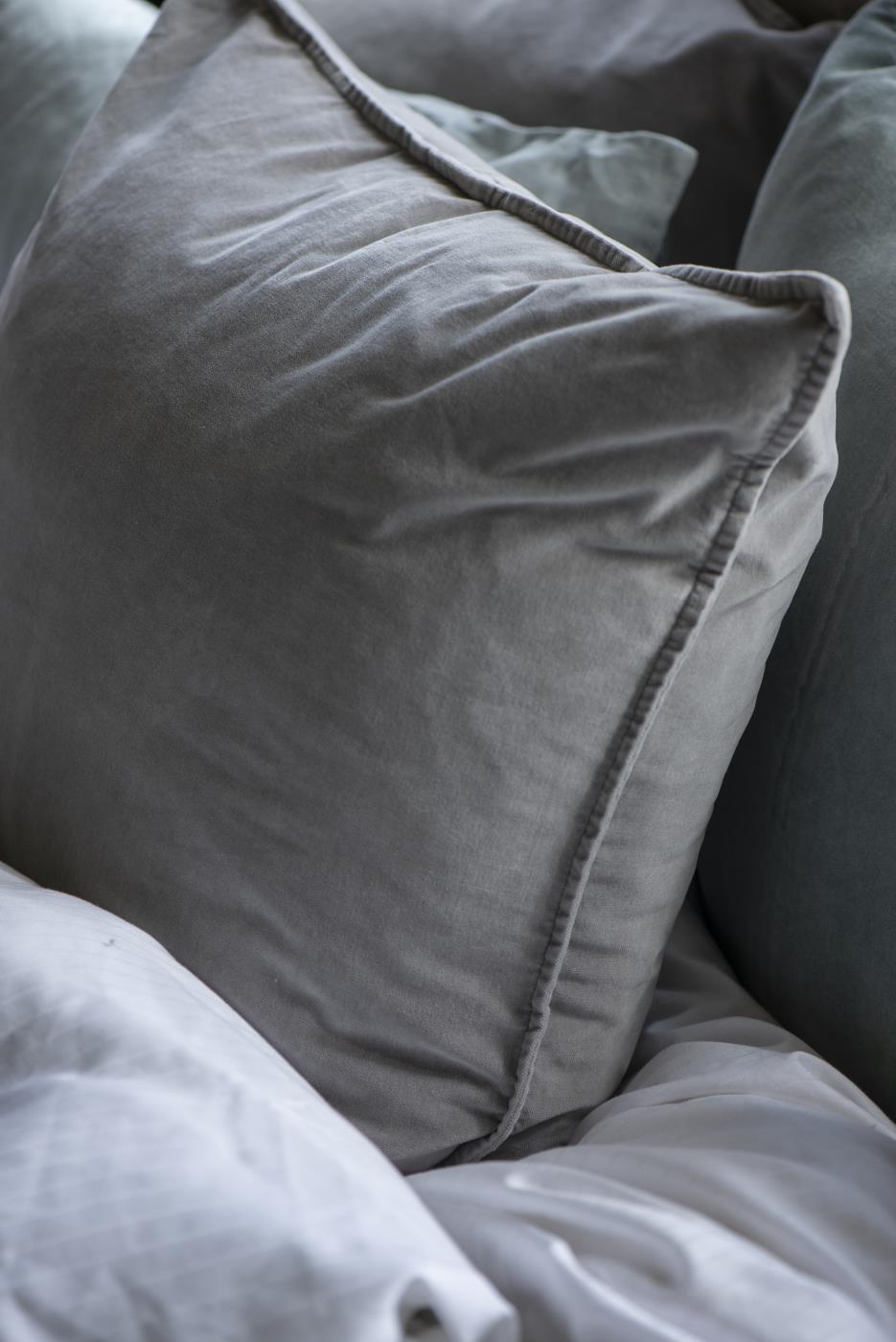 Tuhkhall puuvillasest sametist dekoratiivpadi on kivipestud viimistlusega, mis annab sellele eksklusiivse ja maheda vintage ilme. Tugev tekstuur ja peened iluääred lisavad tootele iseloomu, rõhutades sameti sügavaid ja elegantseid toonivahesid. Padi sobib suurepäraselt erinevate materjalide ja värvidega kombineerimiseks, aidates luua interjööris stiilset ja kihilist muljet.