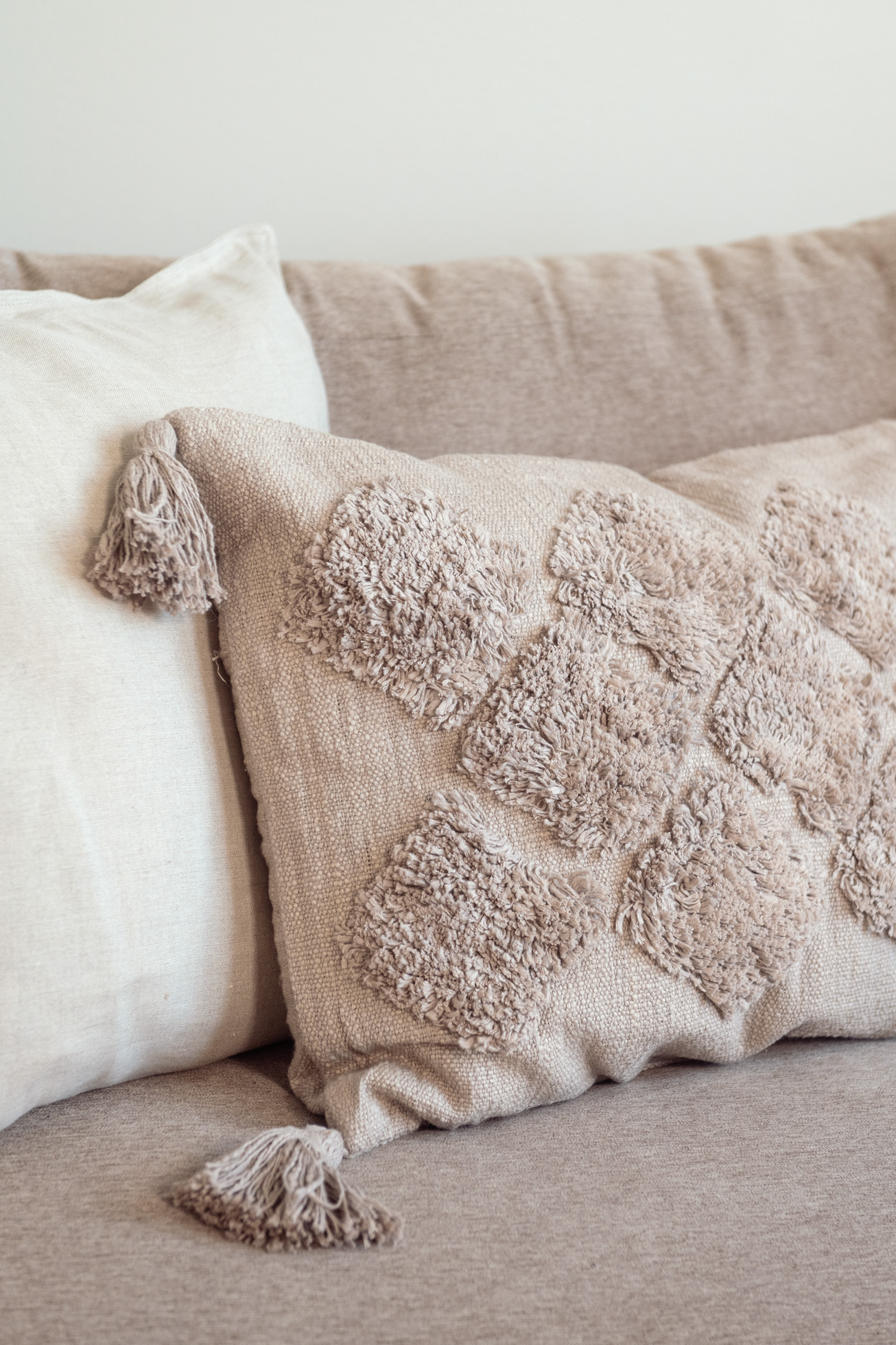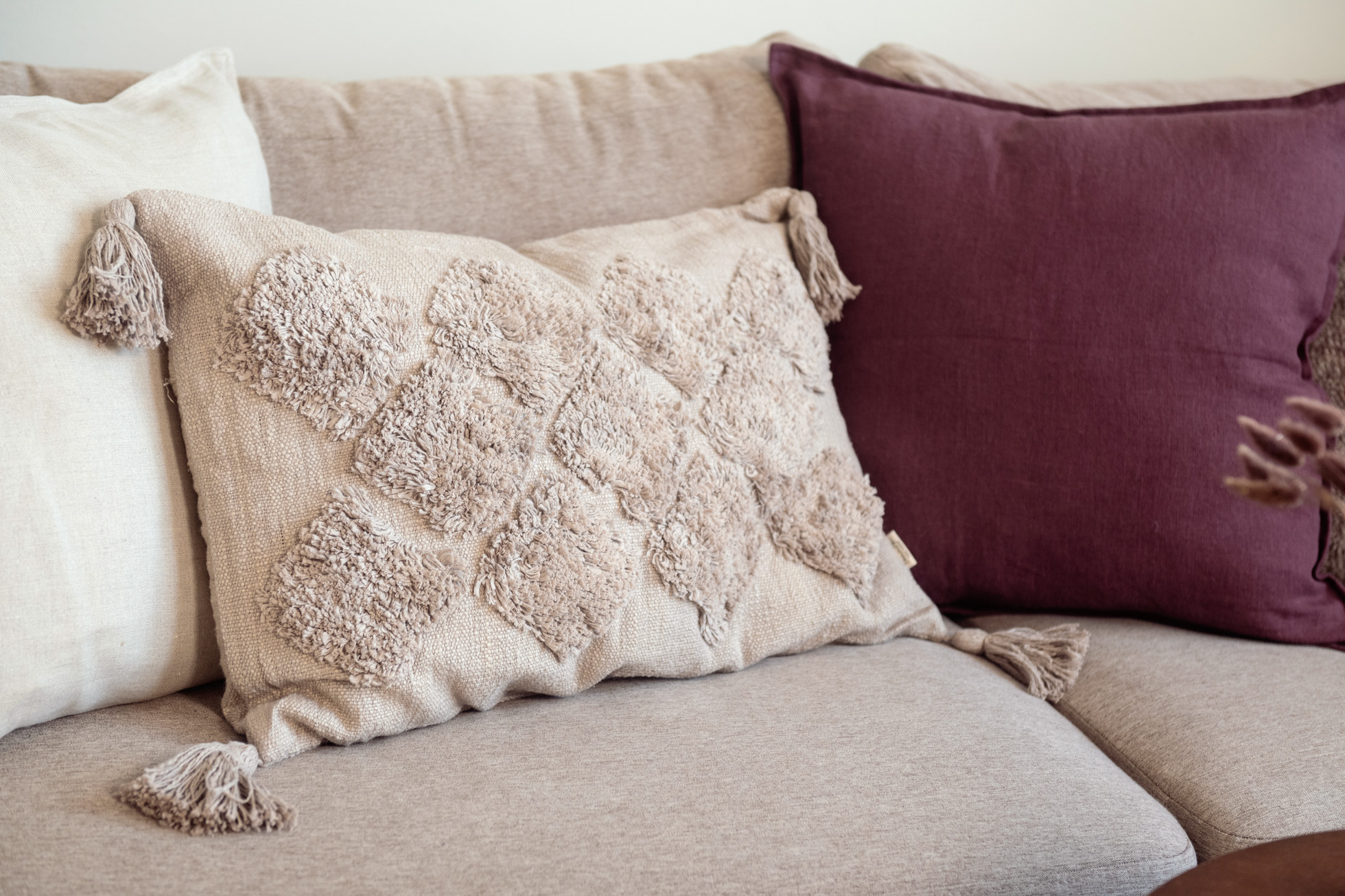 Dekoratiivpadjal on kaunis muster ja tutid nurkades. Padi sobib nii koju kui suvilasse, et tuua interjööri loomulikku pehmust. Eemaldatav kate 100% puuvill, täidis polüester.