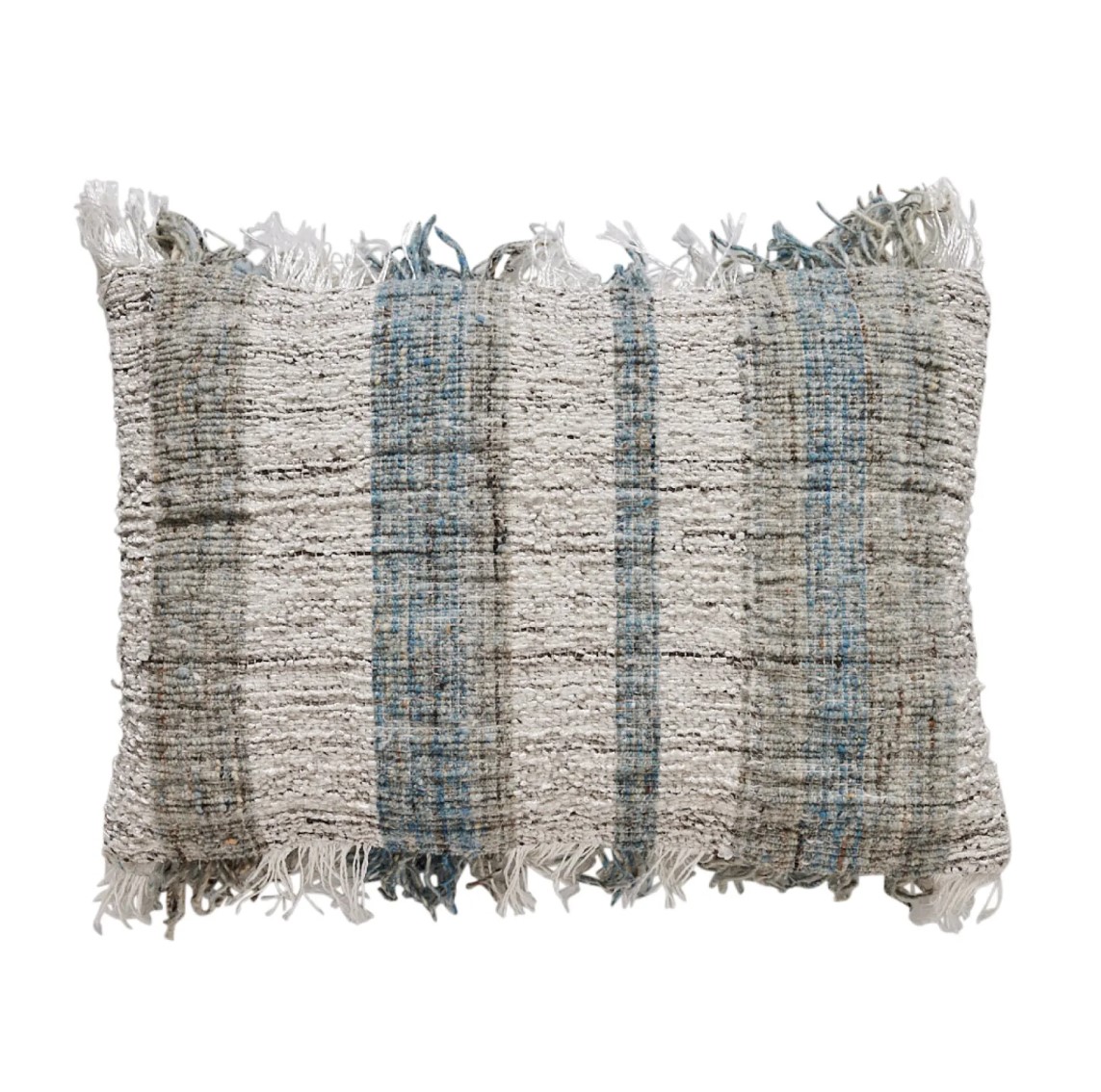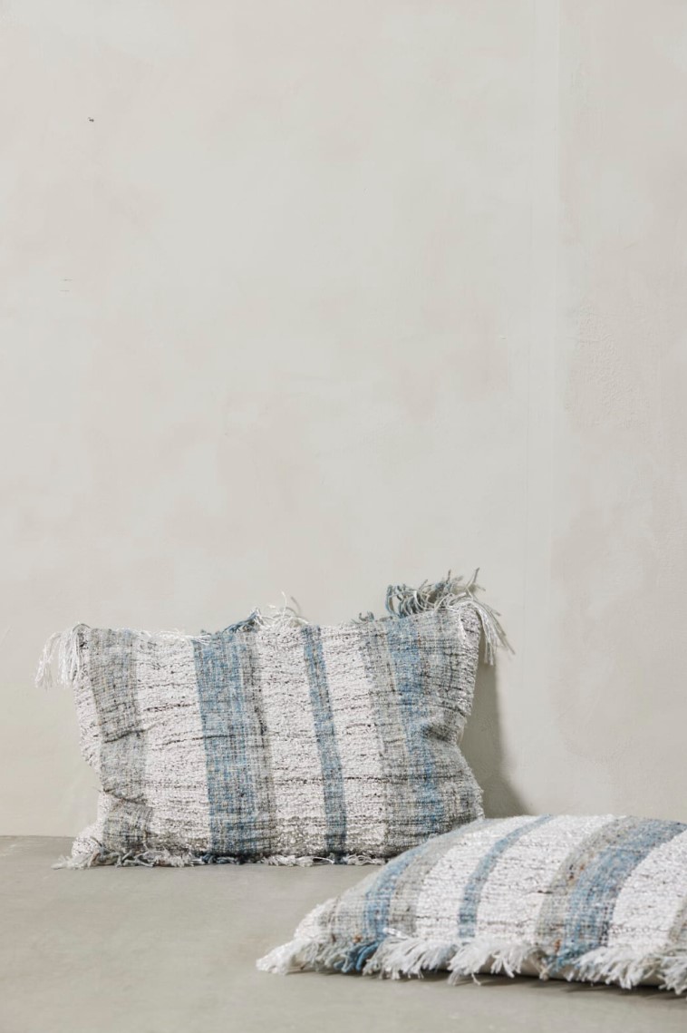Padjal on sinine/roheline värvikombinatsioon, mis on segatud kaunite valkjate satiinviimistlusega niitidega, mis on suurepäraselt segunenud maalähedasema välimusega villaste niitidega. See Viselle sarja kaunis padi on käsitööna valminud osavate käsitööliste poolt, mis annab padjale ainulaadse välimuse.