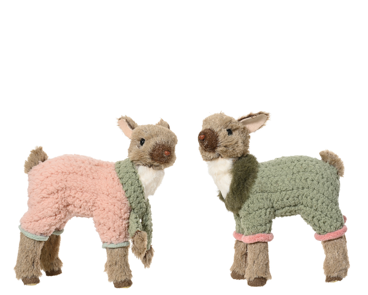 Hirv kampsuniga on armas ja pehme dekoratiivne figuur, mis toob koju hubasust ja mängulisust. Hirveke on riietatud kudumilaadse välimusega kampsunisse ning on saadaval kahes erinevas värvikombinatsioonis (roheline või roosa). Sobib suurepäraselt jõuludekooriks või lihtsalt talviseks sisustuselemendiks.