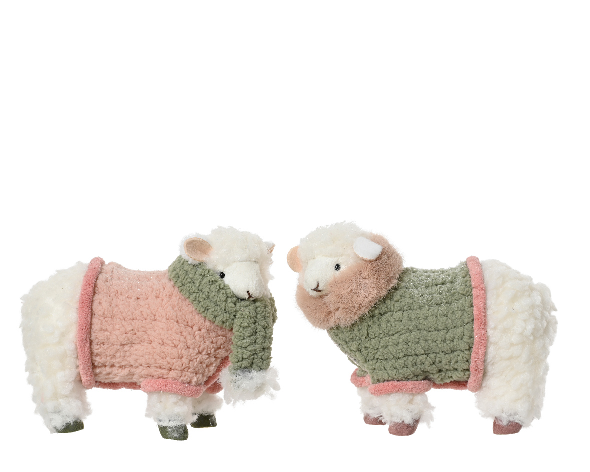 Valge lambakujuline dekoratsioon loob sooja ja talvise meeleolu ning lisab jõulukaunistustele mängulist iseloomu. Kujuke on kaetud pehme „villaga“ ja riietatud kudumilaadse kampsuni ning salliga. Saadaval kahes erinevas kujunduses – üks roosa, teine rohelise kampsuniga. Dekoratsioon sobib suurepäraselt riiulile, aknalauale või osaks pidulikust jõuluseadest.