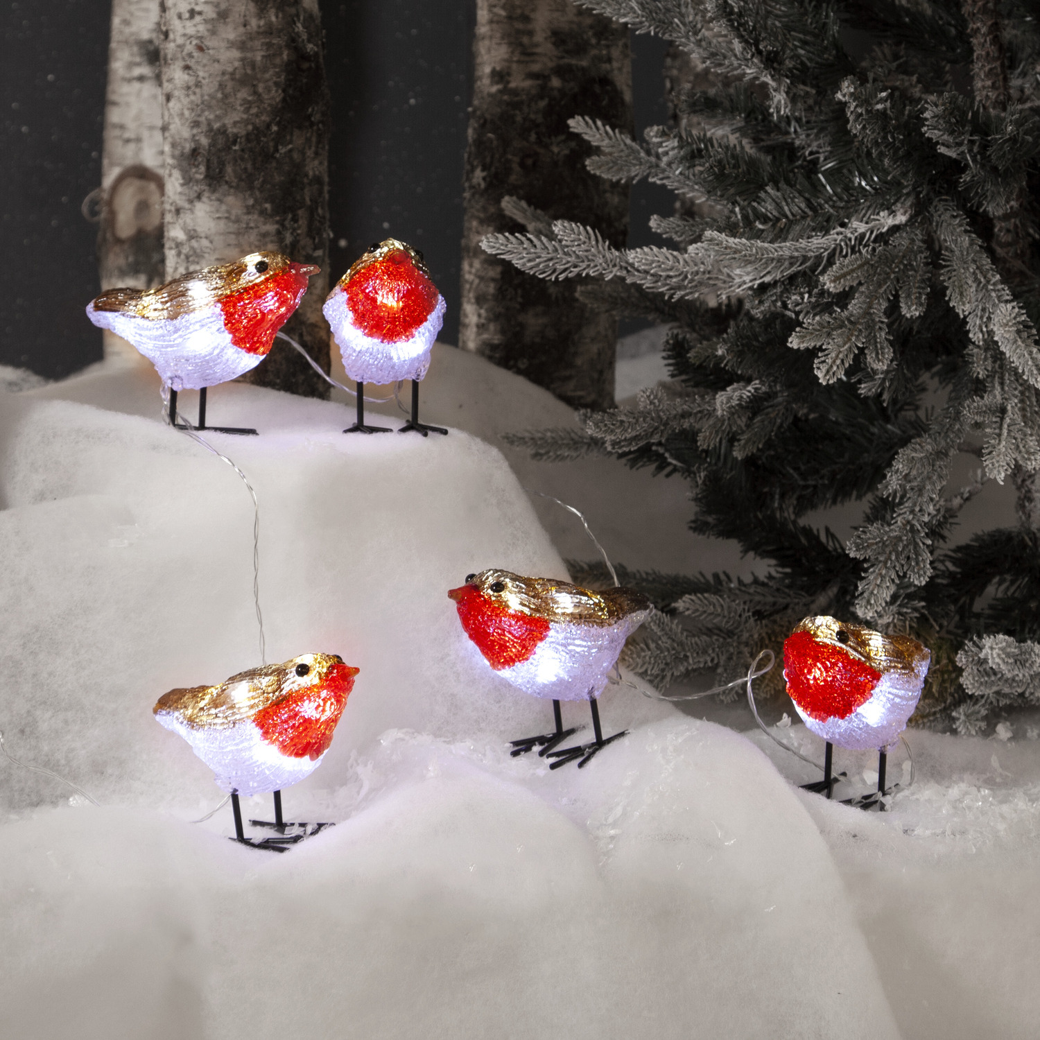 Armas valgusdekoratsioon viie linnukujulise figuuriga toob rõõmu nii aeda kui ka tuppa. Iga lind särab tänu kaheksale sisseehitatud LED-valgusallikale, mis loovad pimedal ajal kauni ja pehme valguse. Sobib suurepäraselt pühadeaegseks kaunistuseks, olgu siis jõulupuu juures, terrassil või välisukse kõrval.
