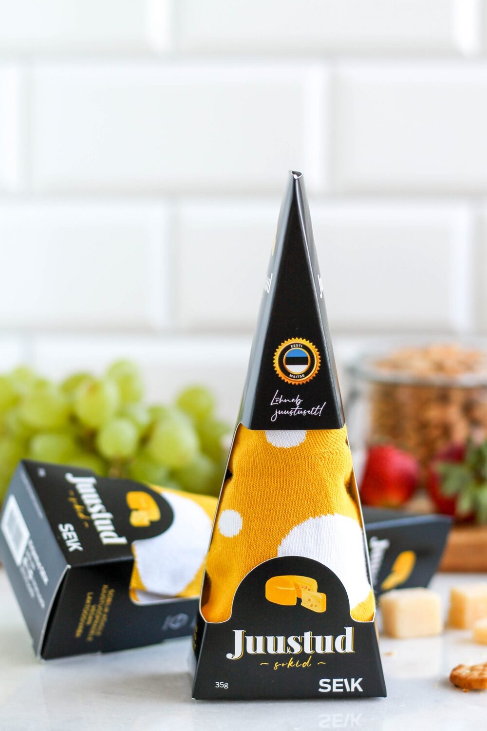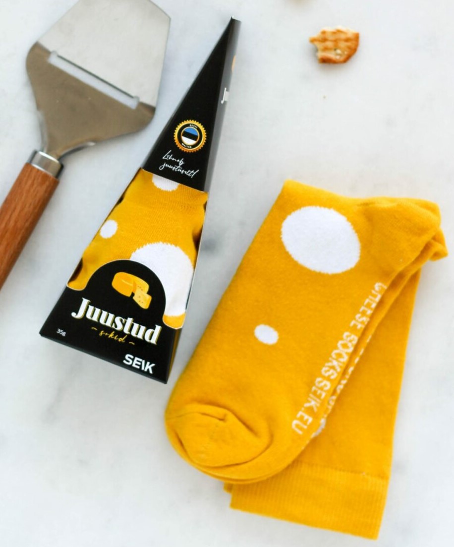 Kollased sokid, mis näevad välja nagu tükike Eesti juustu. Sobivad täiuslikult kingituseks igale juustusõbrale või lihtsalt neile, kes hindavad humoorikat stiili. Välimuselt nagu juust, jalas aga pehmed ja mugavad.