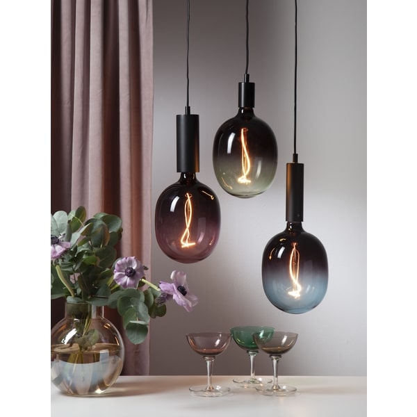 Põneva kuju ja kahevärvilise klaasiga LED elektripirn. Ideaalne roheline värv dekoratiivvalgustuseks.