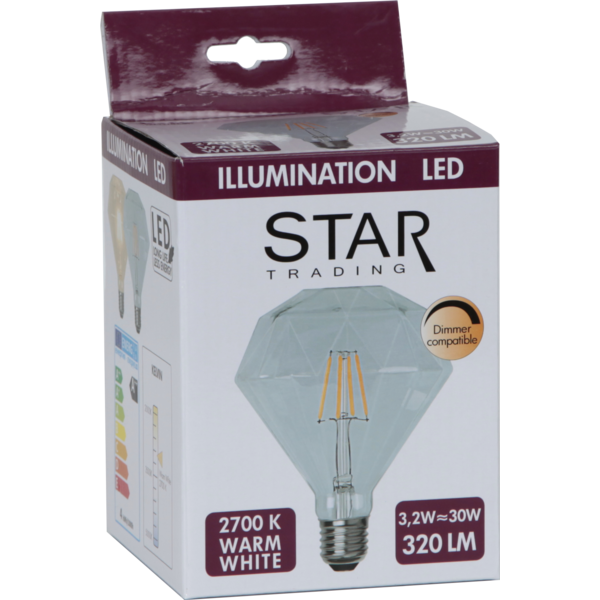 Hämardatav LED pirn Diamond Soft Glow E27 sokliga.