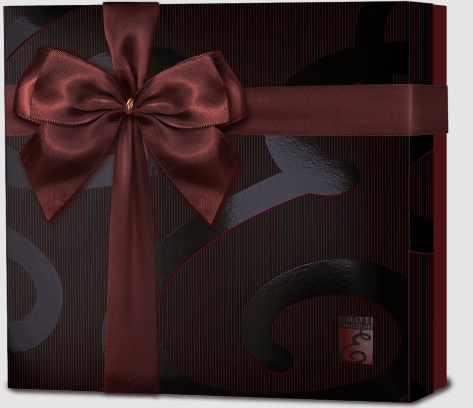 Belgia tumedast šokolaadist trühvlite ja pralineede assortii mustas, pruuni lipsuga karbis.