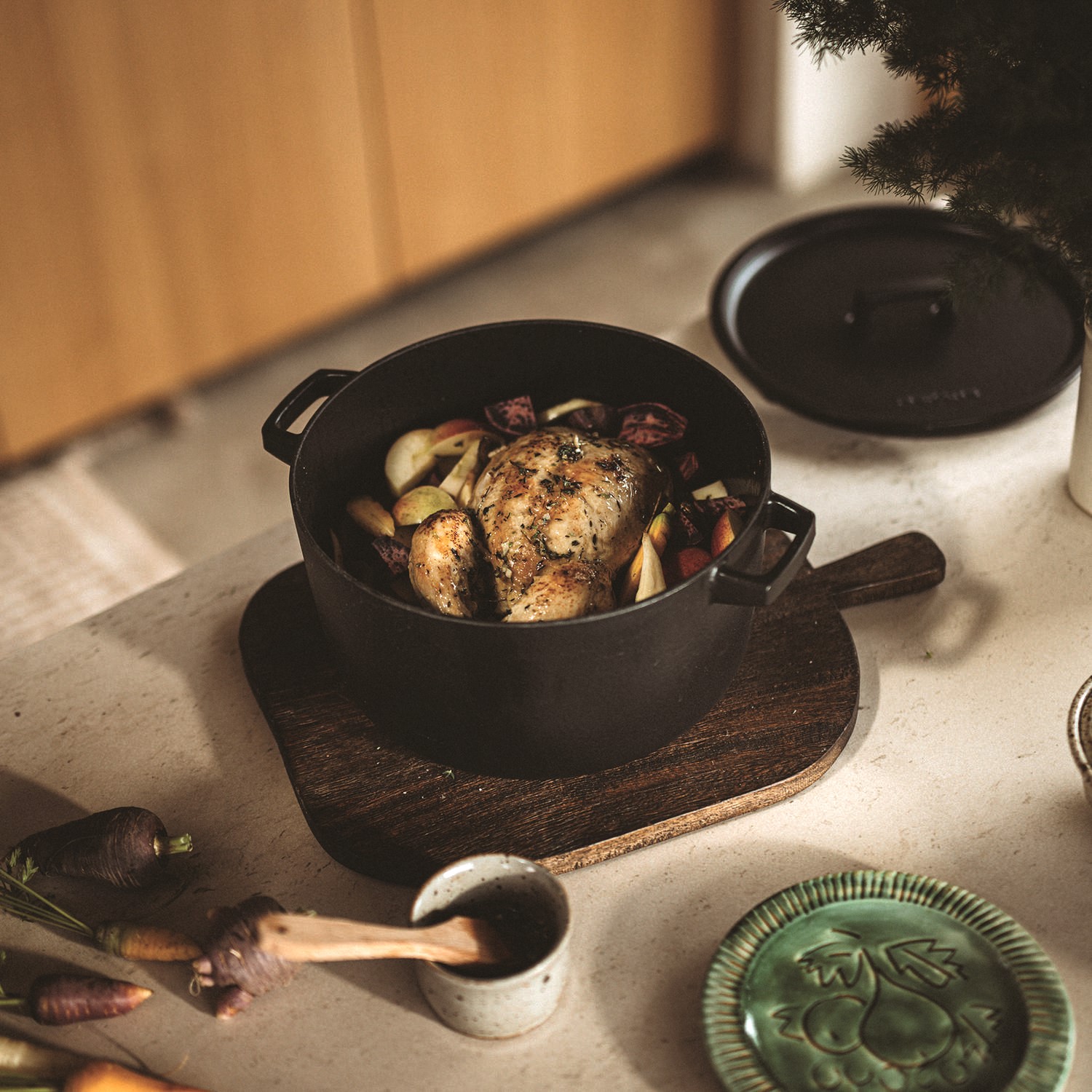 Folken 6L malmpott kaanega on suure mahutavusega, tugev ja klassikalise disainiga malmpott, mis sobib ideaalselt aeglaseks küpsetamiseks ja traditsiooniliste roogade valmistamiseks. Emailkattega pinnaviimistlus ja kvaliteetne malm tagavad ühtlase kuumuse ja pikaajalise kuumuse säilitamise – tulemuseks on pehmeks küpsenud, maitseküllased toidud.