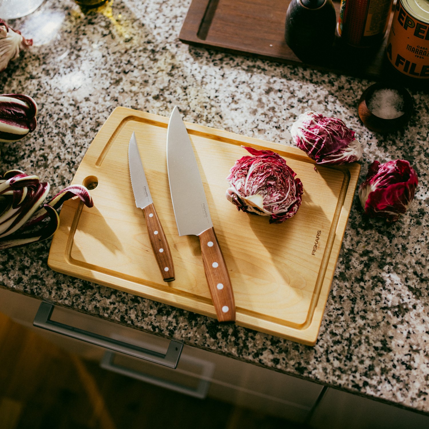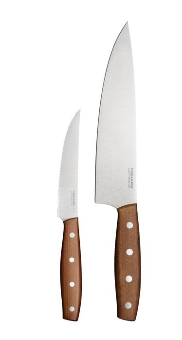 Fiskars Folken nugade komplekt ühendab klassikalise disaini, täpsuse ja loodusliku materjali ilu. Kaks olulist kööginuga (suur kokanuga ja praktiline tomatinuga) pakuvad mitmekülgset kasutust igapäevases toiduvalmistamises. Saksa roostevabast terasest valmistatud terad tagavad kauakestva teravuse, samas kui FSC®-sertifitseeritud vahtrapuidust käepidemed lisavad igale noale naturaalse ja ainulaadse välimuse.