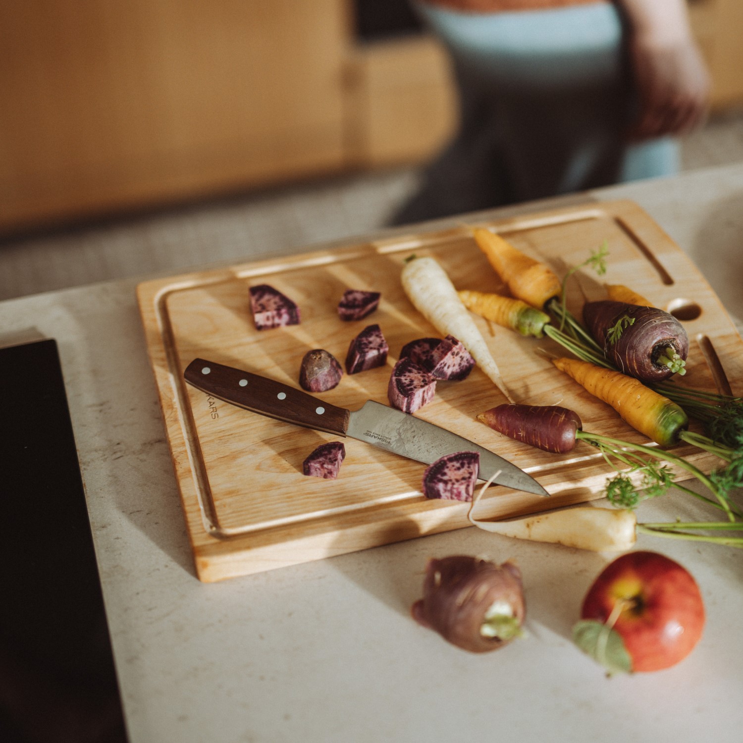 Tera on valmistatud kvaliteetsest Saksa roostevabast terasest, pakkudes pikaajalist teravust ja vastupidavust. Käepide on valmistatud soojatöödeldud FSC®-sertifitseeritud vahtrapuidust, mis tagab loomuliku ilme ja mugava, kindla haarde.