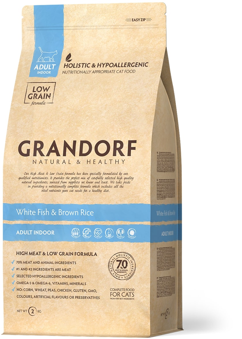 Kassi kuivtoit Grandorf Cat White Fish, Brown Rice 2kg