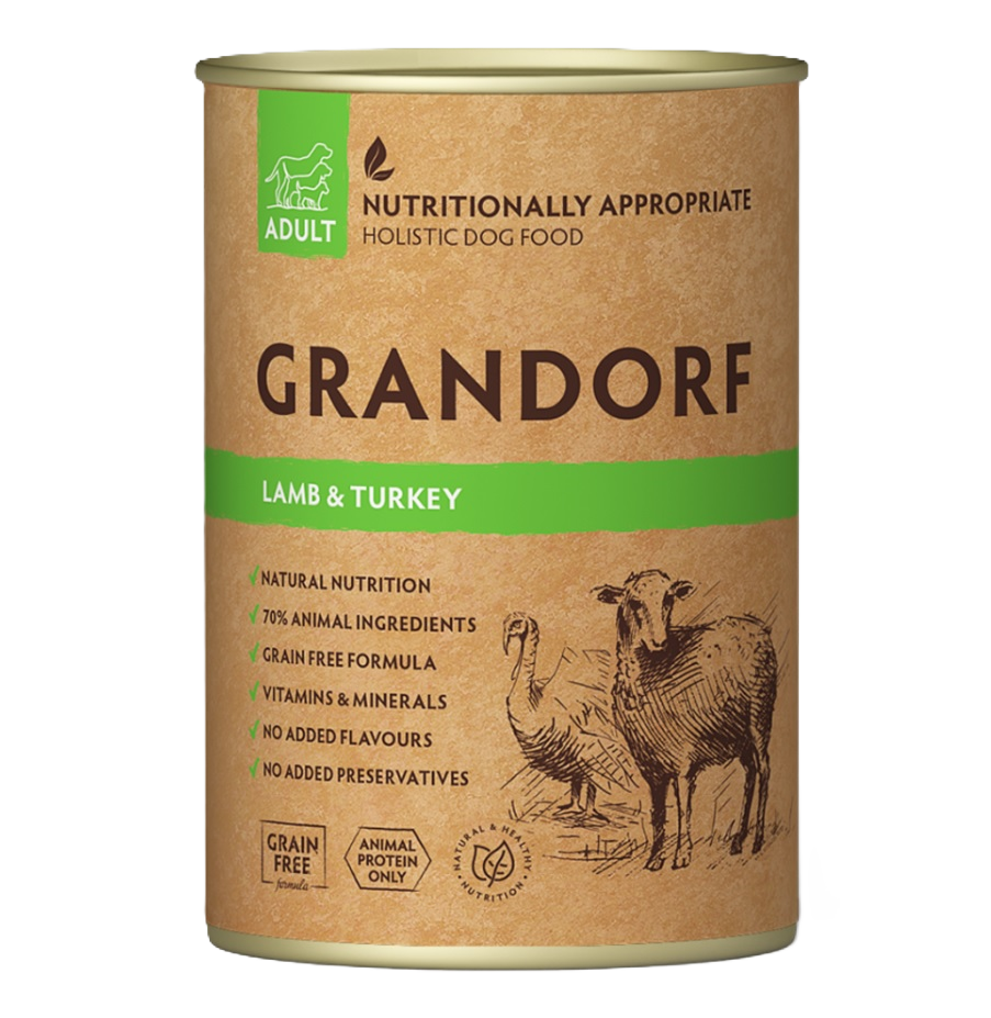 Grandorfi teraviljavaba konserv koerale lamba-ja kalkunilihaga kõigile koeratõugudele alates 1 aastast ja vanematest.Ideaalne tundliku seedesüsteemiga või allergiatele kalduvatele lemmikloomadele. Täisväärtuslik, looduslik, hüpoallergeenne märgtoit koertele. Ainult liha ja mitte midagi üleliigset. Grandorfi märgtoit pakub lemmikloomadele mitmekülgset toitumist.