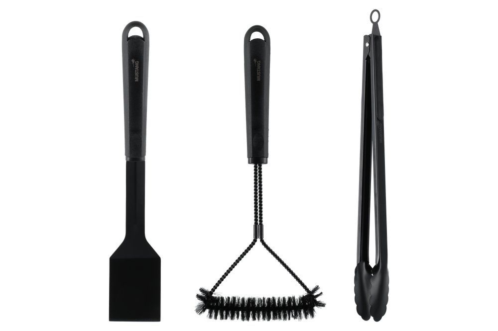 Mustang Black Line grillitarvikute komplekt sisaldab kolme olulist tööriista, mis teevad grillimise mugavaks ja tõhusaks. Komplekti kuuluvad spaatel, tangid ja puhastushari, mis katavad kõik peamised vajadused nii toidu käsitsemisel kui ka grilli hooldamisel. Vastupidav roostevabast terasest konstruktsioon ja must viimistlus tagavad töökindluse igal grillimiskorral.