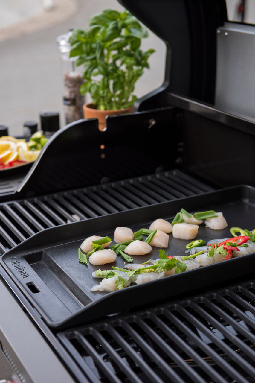 Malmist grilliplaat, mis on spetsiaalselt loodud kasutamiseks Mustang Sapphire gaasigrilliga. Panni servad hoiavad toitu kindlalt paigal ka keeramise ajal. See lisavarustus laiendab veelgi Mustang Sapphire gaasigrilli toiduvalmistamise võimalusi.