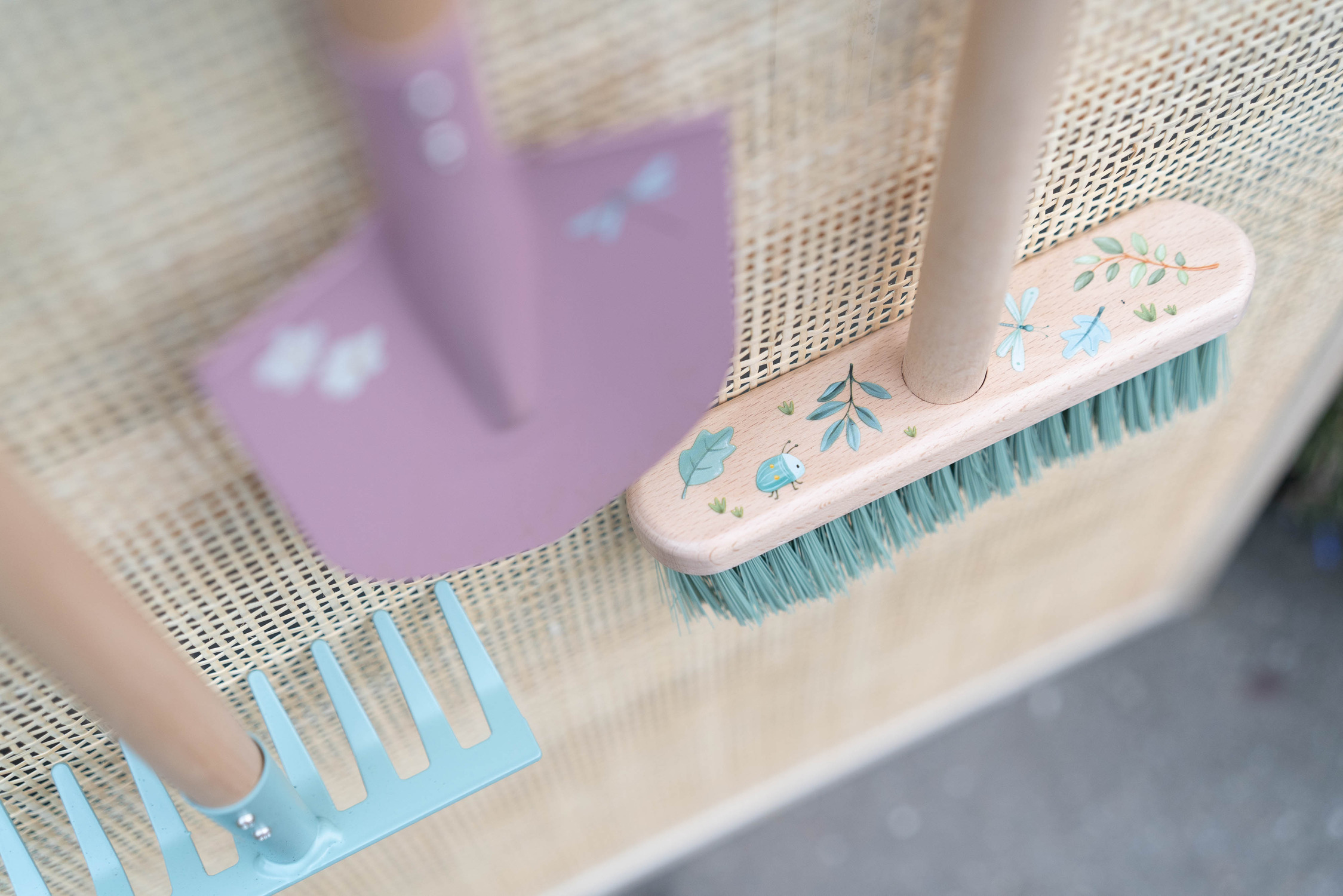 Roheline Forest Friends lastehari muudab koristamise mänguliseks ja lõbusaks. Tänu vastupidavale puidust varrele ja pehmetele harjastele sobib see suurepäraselt liiva, lehtede või muude pisemate segaduste pühkimiseks nii toas kui ka õues.