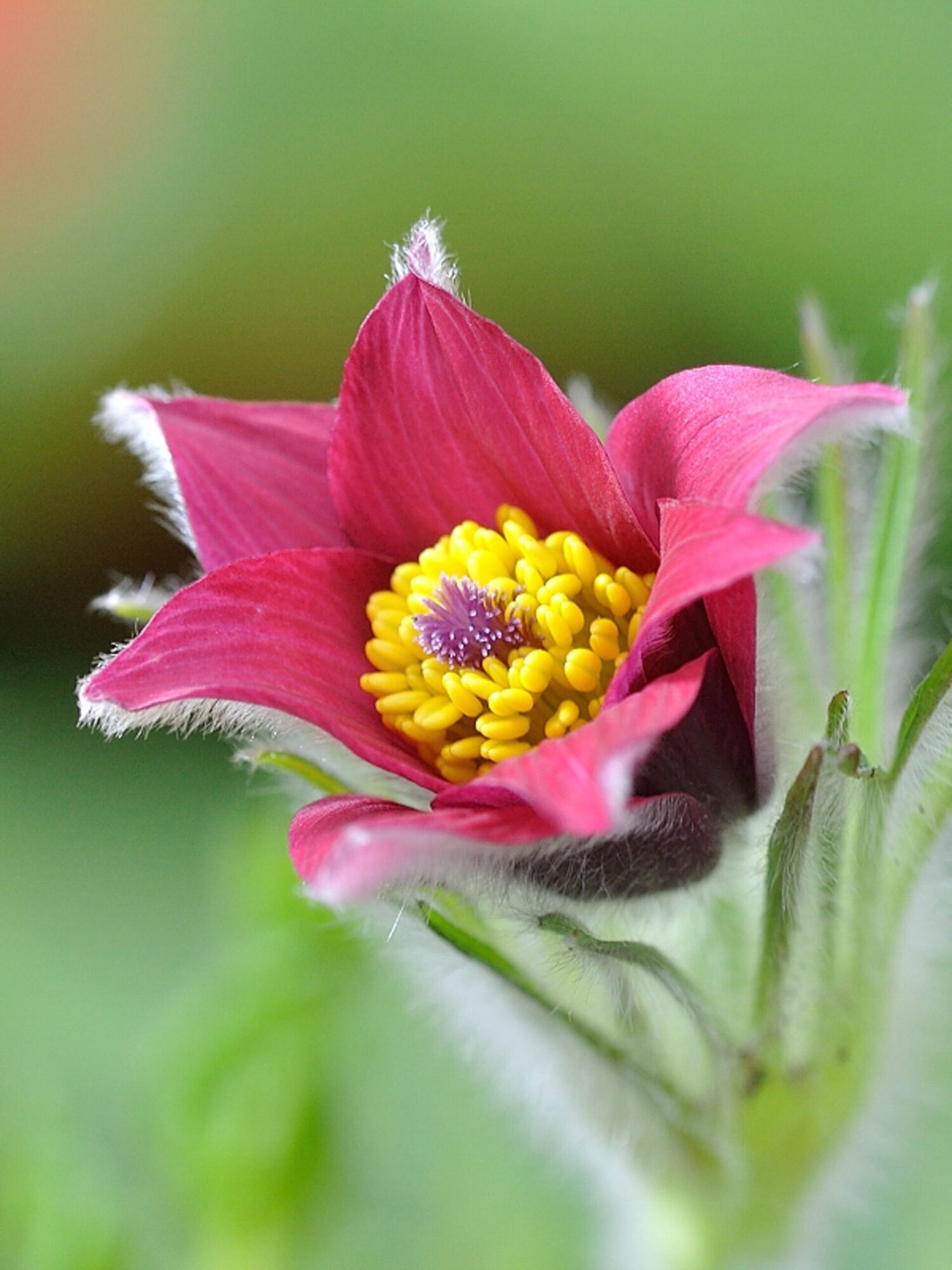 Harilik karukell ‘Pinwheel Dark Red’ (ka tuntud kui ‘Rode Klokke’) on madal püsik, mis moodustab tiheda puhmiku. Lehed on peened, sõnajalalaadsed ja noorelt siidiselt karvased. Kevadel ilmuvad tumepunased sametised õied kollaste tolmukatega. Õitsemisele järgnevad dekoratiivsed karvased seemnetutid. Sobib kiviktaimlasse, peenrasse või looduslikuma ilmega haljastusse.