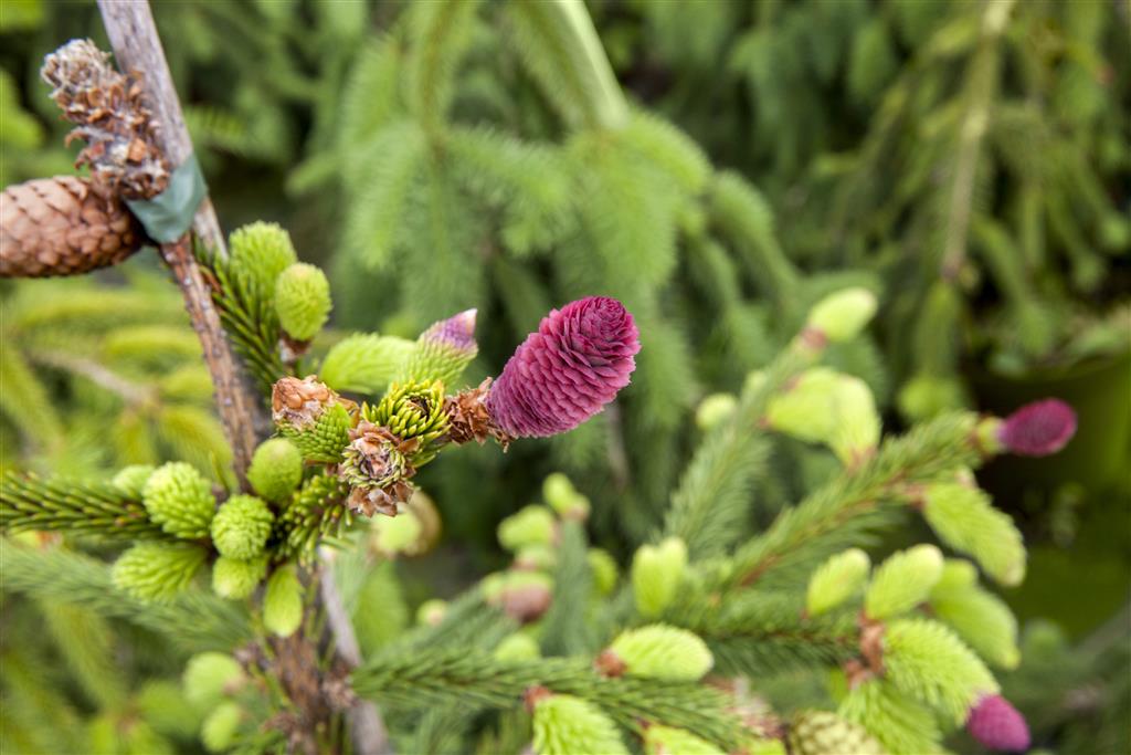 Harilik kuusk ‘Acrocona’ on ainulaadne sort, mis paistab silma oma erakordse omaduse poolest kanda juba noore istikuna okste tippudes suuri ja silmatorkavaid käbisid. Kevaditi ehivad võrsete tippe säravpunased emasõisikud, mis muutuvad suve jooksul suurteks pruunideks rippuvateks käbideks, painutades oma raskusega oksad maaliliselt kaardu. Kasvukujult on puu ebakorrapärane ja laipüramiidjas, moodustades aastatega pigem laiuva põõsa või madala, veidi metsiku ilmega puu.