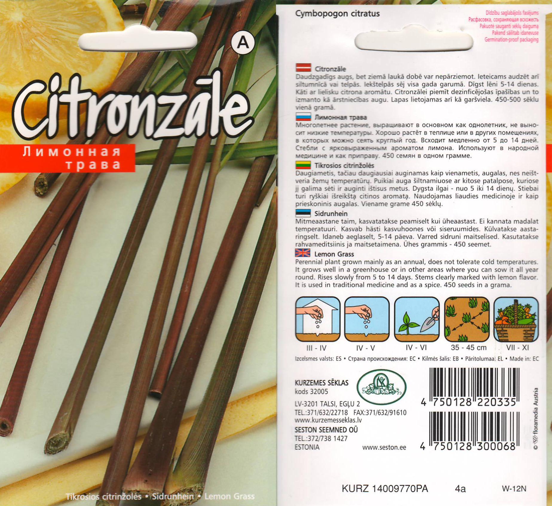 Cymbopogon citratus Tootja: Kurzemes seklas Tootekood: K063294